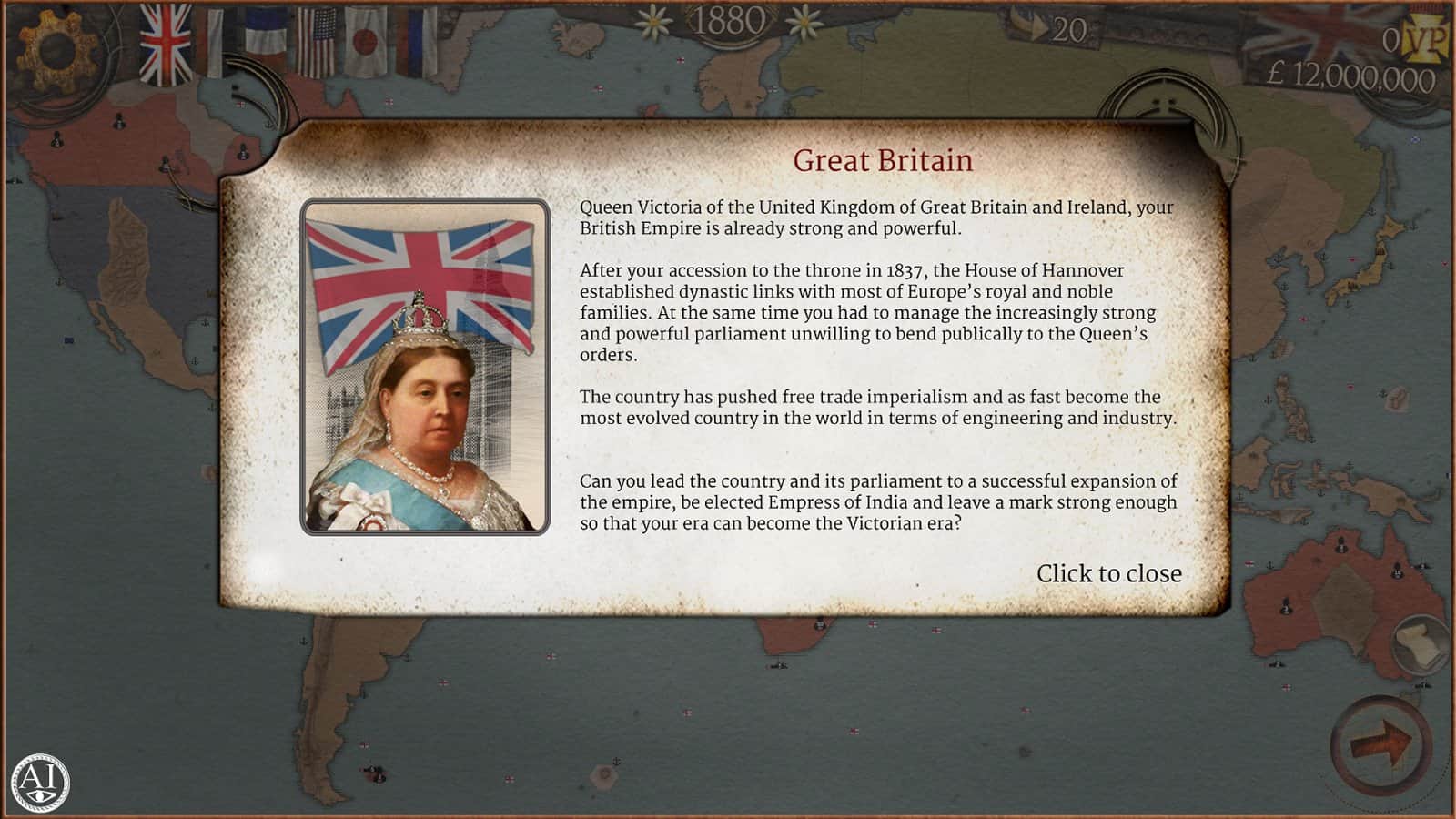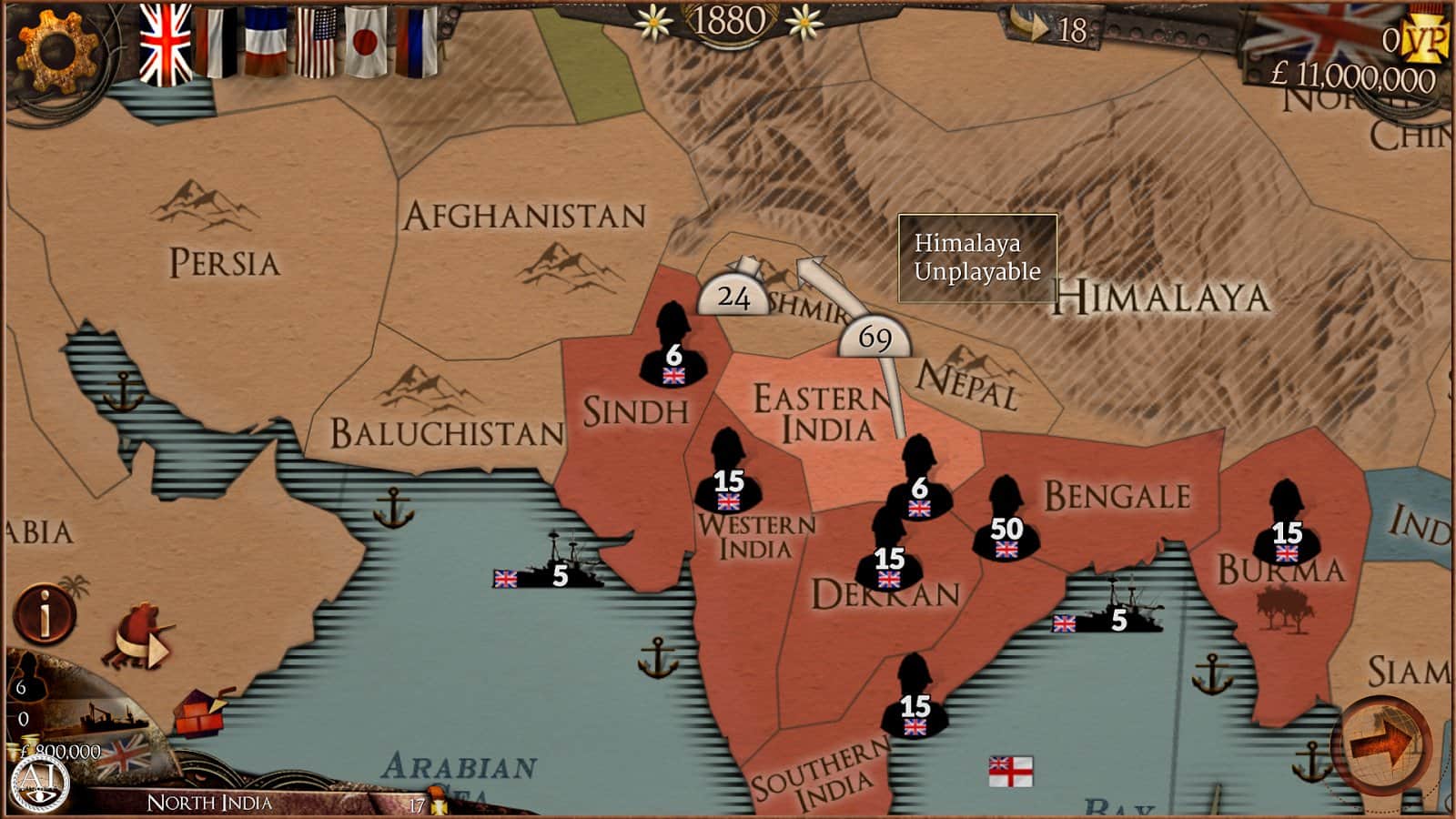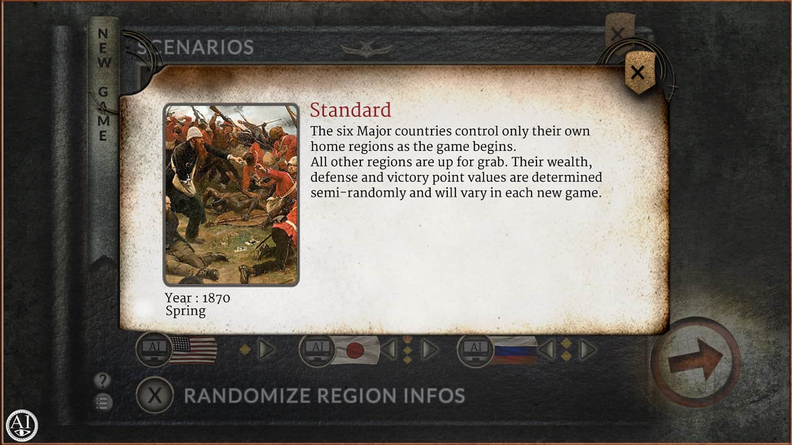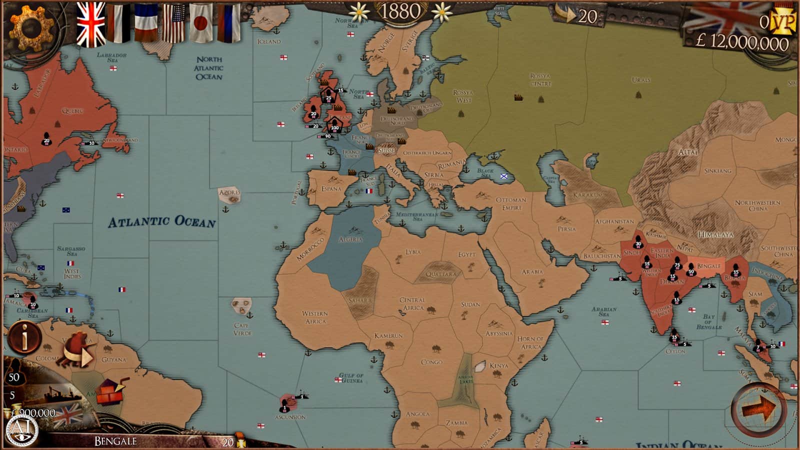 Sömürge Fetih – 1800'ler ile 1900'ler arasında geçen koloniyal fetihlerdir. Ana hedefiniz diğer uluslar arasında hakimiyet kurmaktır. Oyunculara altı süper güçten birini seçme imkanı verilir: Birleşik Krallık, Almanya, Fransa, ABD, Japonya veya Rusya. Ülkenizi seçtikten sonra, diğer devletler arasında lider olmak için elinizden geleni yapın. Hem yapay zekaya hem de gerçek oyunculara karşı oynayabilirsiniz. Dünyanın daha fazla bölgesini fethettiğinizde, işleriniz o kadar iyi gidecektir. Puan kazanın ve belirli bir puana ulaştığınızda zafer kazanırsınız.