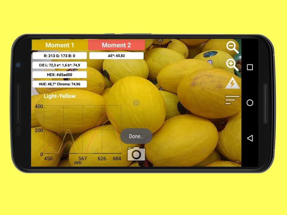 - CIE LAB, renk adı, Chroma, gerçek zamanlı spektrumlar gibi verilerin gösterimi;