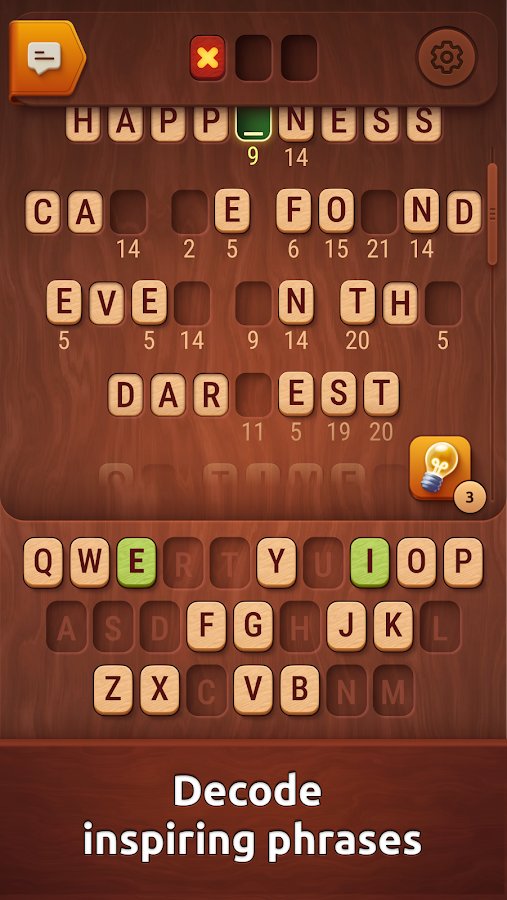 Colorwood Words - Kriptogram - kelimeleri çözmeyi sevenler ve zihni geliştirmek isteyenler için heyecan verici bir oyundur. Her yeni kelimenin kelime dağarcığını genişlettiği ve çözüm arayışına ilgiyi uyandırdığı huzurlu ve mantık dolu bir atmosfere dalın.