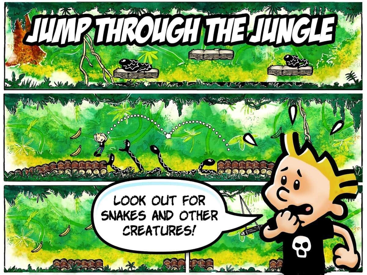 Çizgi Film Oğlan - yatay platformlarda gelişen, platform unsurlarıyla birlikte eğlenceli bir yatay koşucu. Koşarken hem alanlarda hem de dikey olarak hareket etmeniz gerekecek; bu arada tabii ki çeşitli tuzaklardan kaçınmanız ve ödülleri toplamanız gerekecek. Basit kontrol, dinamik oyun deneyimi, hoş çizilmiş grafikler, eğlenceli karakter, bunların hepsi oyuna hafiflik ve çekicilik katıyor. Ayrıca, büyük miktarda seviye, gelişim sistemi ve birçok ilginç oyun özelliği de dikkat çekici.