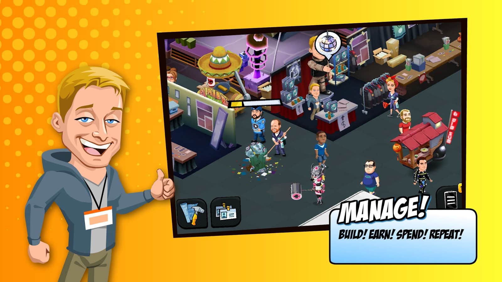 Dolandırıcı: Oyun – android için heyecan verici bir oyundur, burada ana göreviniz evrensel bir bilim kurgu konferansı düzenlemektir. Bu oyunda, sevdiğiniz çizgi film ve dizi karakterleriyle yeniden karşılaşacaksınız. Büyük bir hayran kitlesi toplayın ve onların rahat etmesi için elinizden geleni yapın. Çeşitli sahneler, dükkanlar, kafeler ve diğer gerekli nesneleri inşa edin. En deneyimli organizatör olun ve verilen görevleri yerine getirin. Tuvaletleri gerekli yerlere yerleştirin, etkinliğinizi olabildiğince temiz tutmak için birçok temizlikçiye komuta edin. Fantastik gösterilere katılın ve sayısız uzaylıyla savaşın. Tamamladığınız görevler için değerli ödüller kazanın ve etkinliğinizi geliştirin.