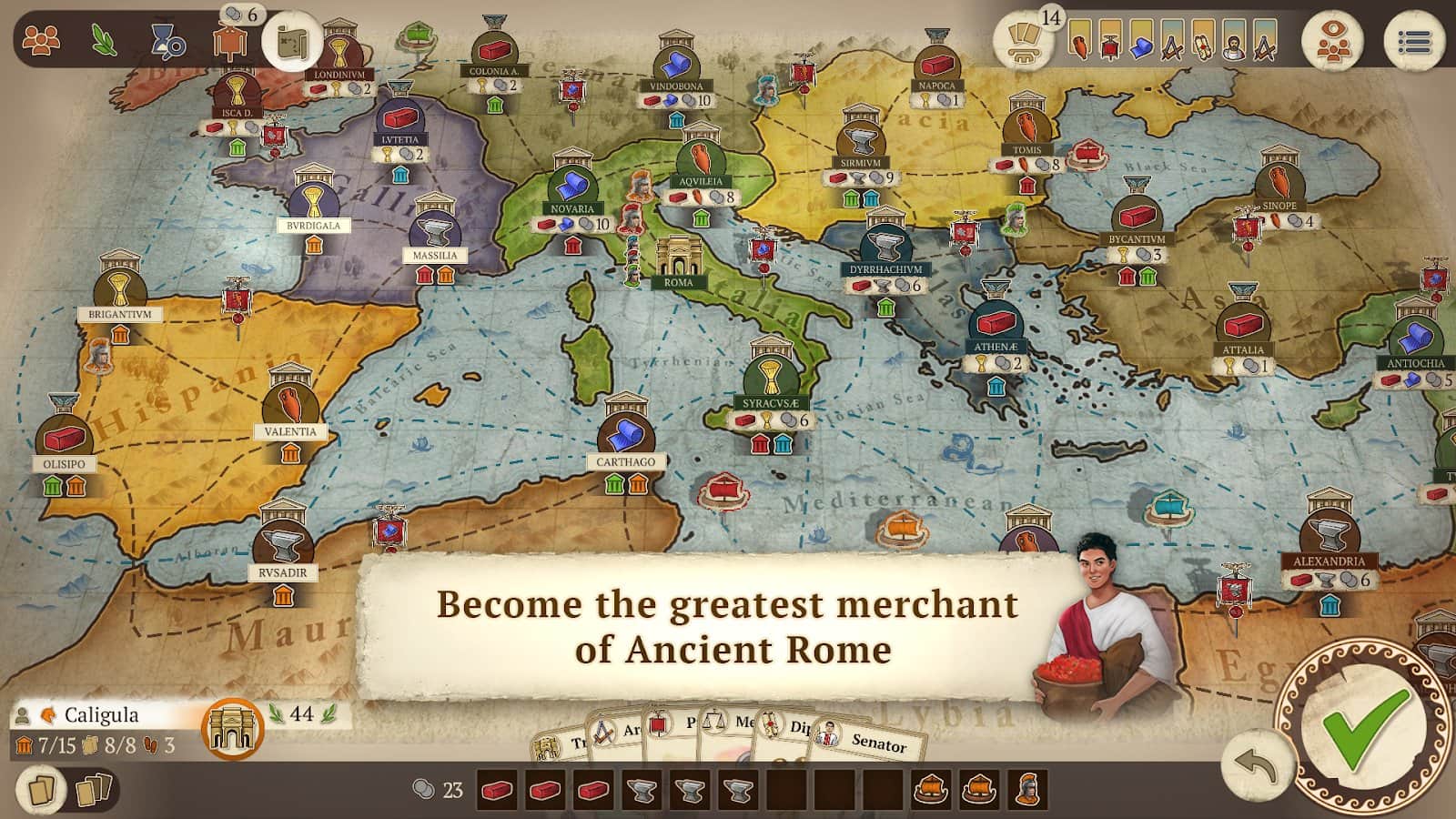 Antik Roma İmparatorluğu dönemine geri dönün ve diğer karakterlerle çeşitli şekillerde etkileşimde bulunabileceğiniz tüm mekanları keşfedin. Temel ürünleri satın alın ve ticaret yapmaya başlayın, gelecekteki eylemleriniz için bir harita geliştirin, düşüşler ve rakiplerin hileleriyle başa çıkmaya hazır olun. Büyük bir deneyim kazanın ve o dönemlerin her koşulunda yaşamayı öğrenin, kendi ticaret imparatorluğunuzu geliştirerek ve zenginleşerek. Potansiyel alıcılar, çalışanlar ve iş yapmaya devam edeceğiniz olası ortaklarla bir araya gelin.
