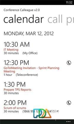 Conference Calleague - Windows Phone için bir uygulama, telefon konferansları oluşturmanıza, hatırlatıcılar kaydetmenize ve sonraki telefon konferanslarının takvimini taramanıza yardımcı olur. İş insanları ve sadece iş için harika bir program.