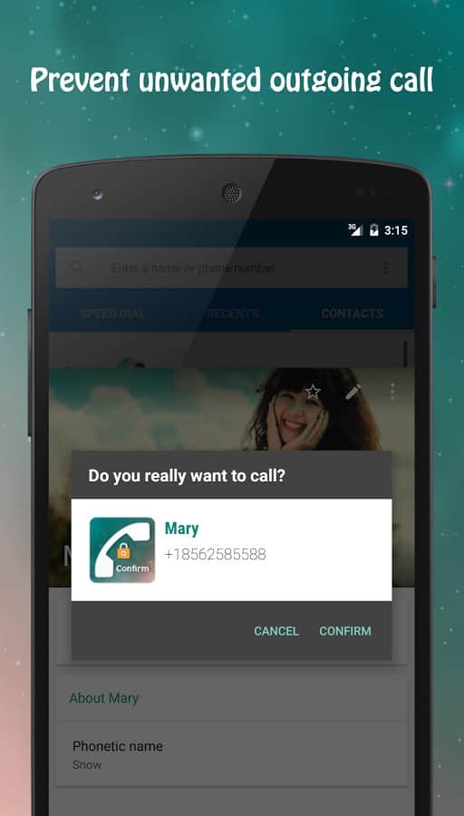 Arama Onayla - Konuşma sırasında aramayı sık sık mı kesiyorsunuz? Kazara yanağınızla veya kulağınızla mı bastırıyorsunuz? Eğer bu sorun size tanıdık geliyorsa ve cihazınız arama sırasında ekranı kilitlemeyi reddediyorsa, bu uygulamayı kurun ve konuşma sırasında akıllı telefonunuzun ekranını kolayca kilitleyebilirsiniz. Aslında burada başka bir işlev yok, ancak bu uygulamanın görünümünü özelleştirebilir ve sizin için vazgeçilmez hale getirebilirsiniz.