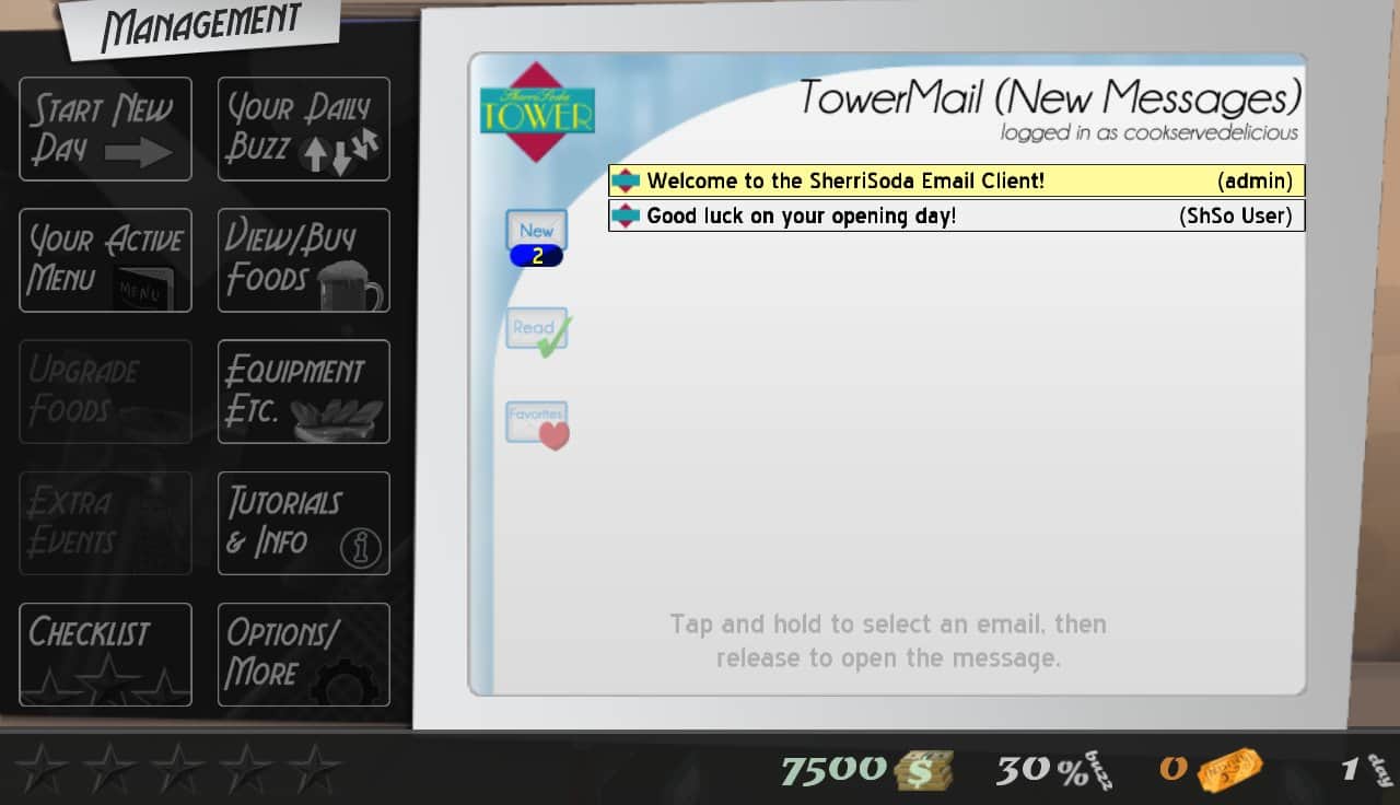 Oyun, bir zamanlar binanın kalbi olan, şimdi eski ve yıpranmış bir restoranın yer aldığı SherriSoda Tower'da geçiyor. Bu restoran, işlerin (ve kiracıların) rekor düşük seviyelere düşmesi nedeniyle kapandı. Ancak yerel ekonomi yeniden büyümeye başladığında ve doluluk oranı zirveye ulaştığında, SherriSoda Tower eski restoranı Pişir, Servis Et, Lezzetli'yi geri getirmeye ve onun yaratımında tam kontrol sağlama kararı aldı.