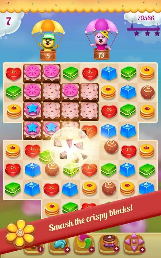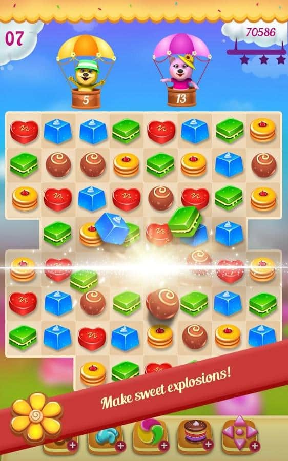 Kurabiye Cenneti – sevimli ayılarla birlikte masalsı bir dünyada dolaşın ve lezzetli şekerlerden sıralar oluşturun. Bu üçlü eşleştirme türündeki oyunda, şekerlerden sıralar oluşturup onları patlatarak zincirleme reaksiyon başlatmanız gerekiyor. Şekerlerden mümkün olduğunca uzun sıralar oluşturarak harika bonuslar ve güçlendirmeler kazanın. Yeterli puanı toplayın ve en iyi oyuncularla yarışın. Zor durumlarda bonusları kullanın ve kombinasyon darbeleri gerçekleştirin, böylece seviyeyi mümkün olan en kısa sürede tamamlayarak maksimum puanı kazanın. Canlı grafiklerin ve harika efektlerin tadını çıkarın.