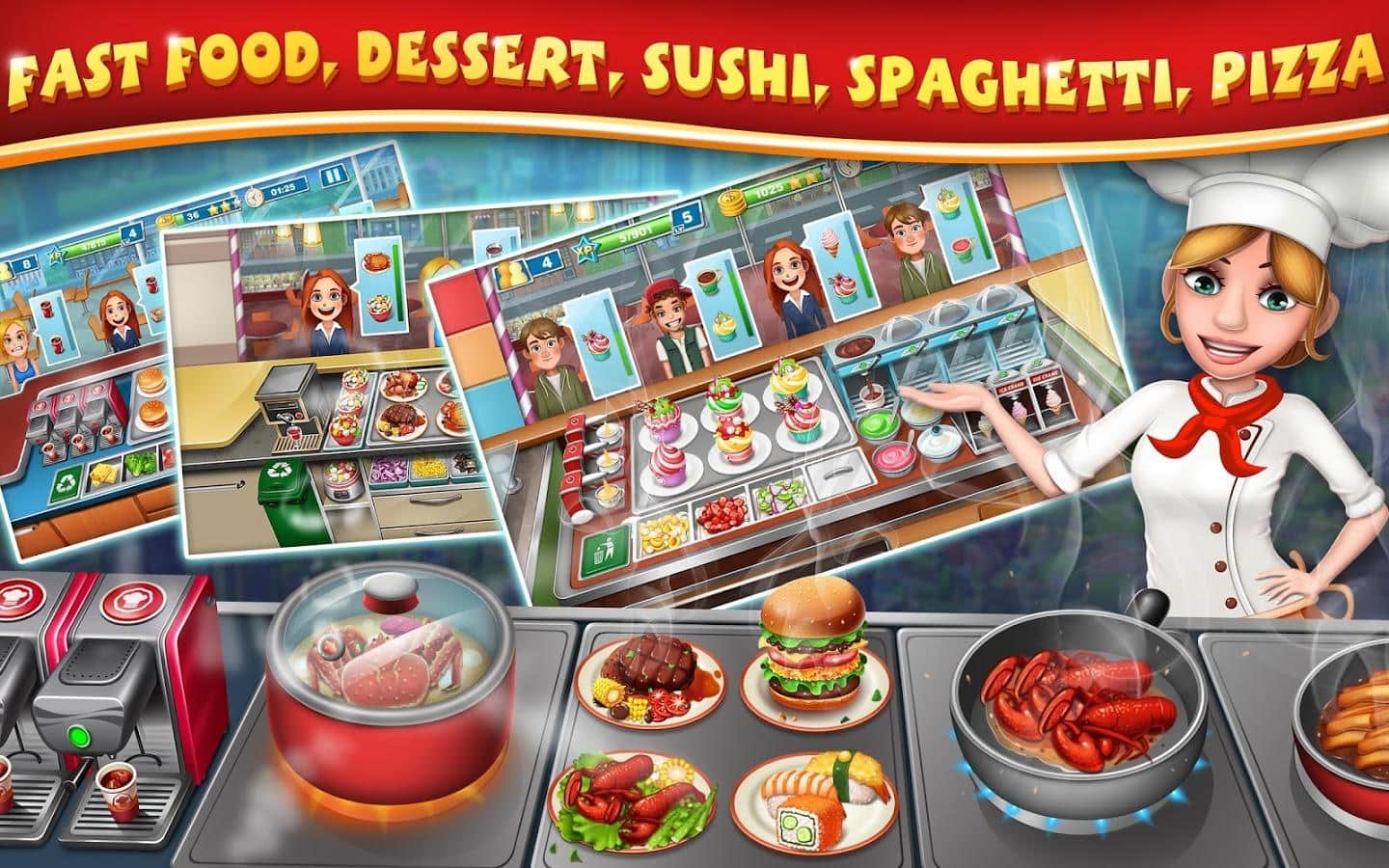 Aşçı – Android için bir oyundur, burada küçük bir restoranın sahibi olacaksınız. Şef ol ve müşterilerin siparişlerini yerine getirirken onları hızın ve zarif tatlarınla şaşırt. Yeni yemekler hazırla, yeni tarifler ve malzemeler keşfet, ayrıca cömert bahşişler al. Dünyanın dört bir yanında yeni restoranlar aç ve muhteşem yemekler hazırlayacağın sadık müşteriler edin. Sadece taze malzemeler kullan ve sonunda birer mutfak şaheseri ortaya çıkar. Büyük karlar elde et ve restoranın için yeni ekipmanlar, mutfak gereçleri ve dekorasyonlar satın al.