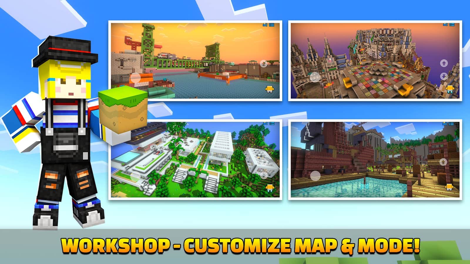 Cops N Robbers:Pixel Craft Gun - İstediğinizi yapın: hayatta kalmak için diğerleriyle çatışın, mevcut blokları kullanarak yeni haritalar oluşturun, çeşitli modlarda oynamayı deneyin ve kişiselleştirilmiş silahlar ile ek yapı almayı unutmayın! 20'den fazla harita, 250 tür silah, 10 zırh seti (‘Noel Baba’, ‘Tesla’, ‘Zencefilli Kurabiye Seti’, ‘Şeker Çocuk/Kız’, ‘Şahin’, ‘Tesla’), karakterler için ilginç skinler ve silahlar veya skinler oluşturma imkanı. Tüm özel efektleri aktif hale getirin ve savaş alanında zafer kazanın!