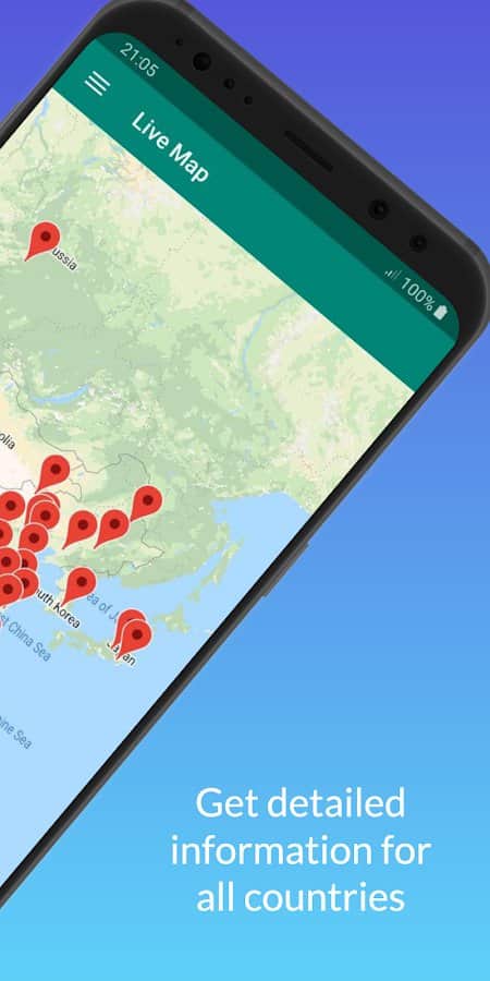 - Dünya haritasında enfekte olan insan sayısını görüntüleme;