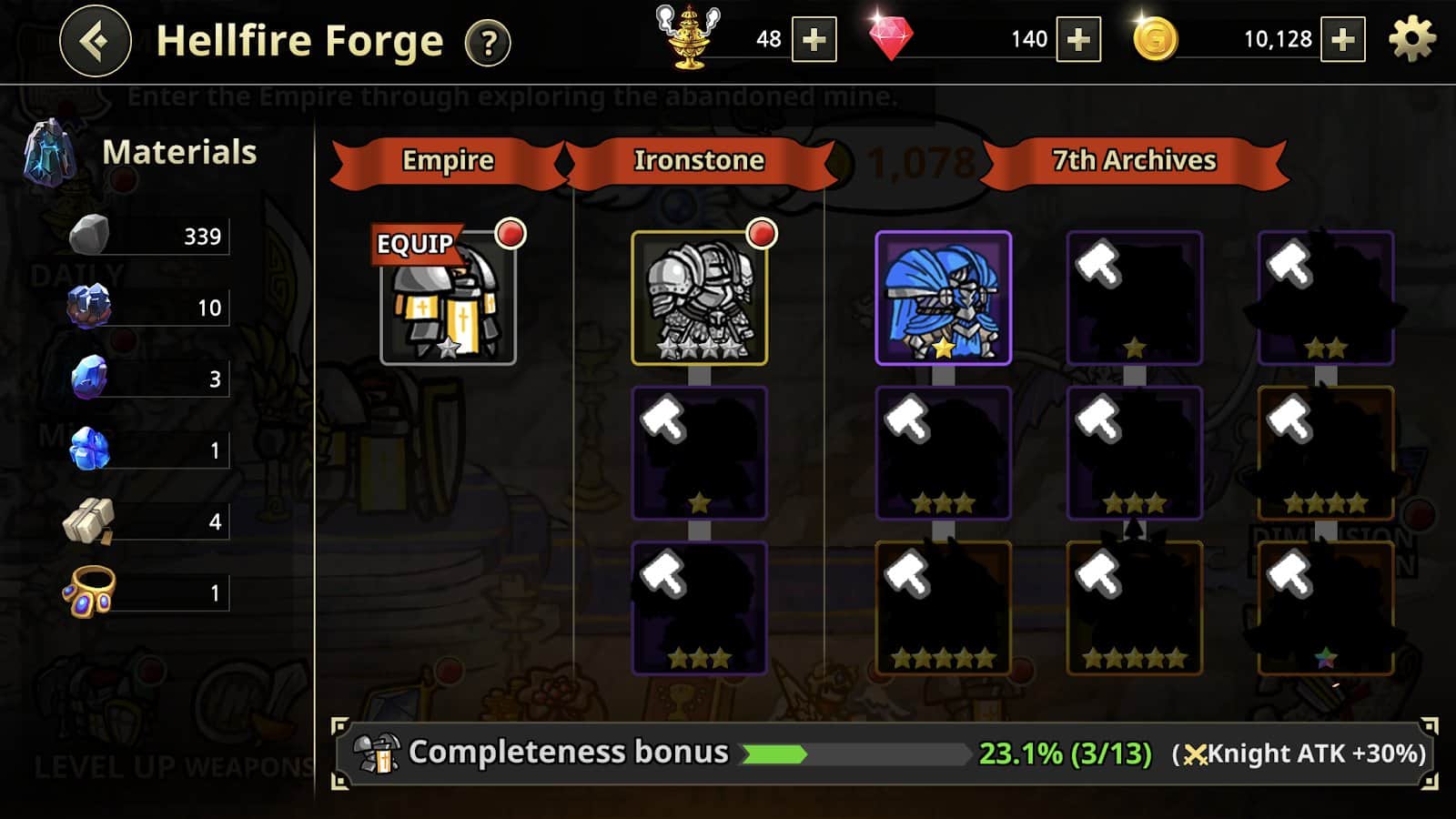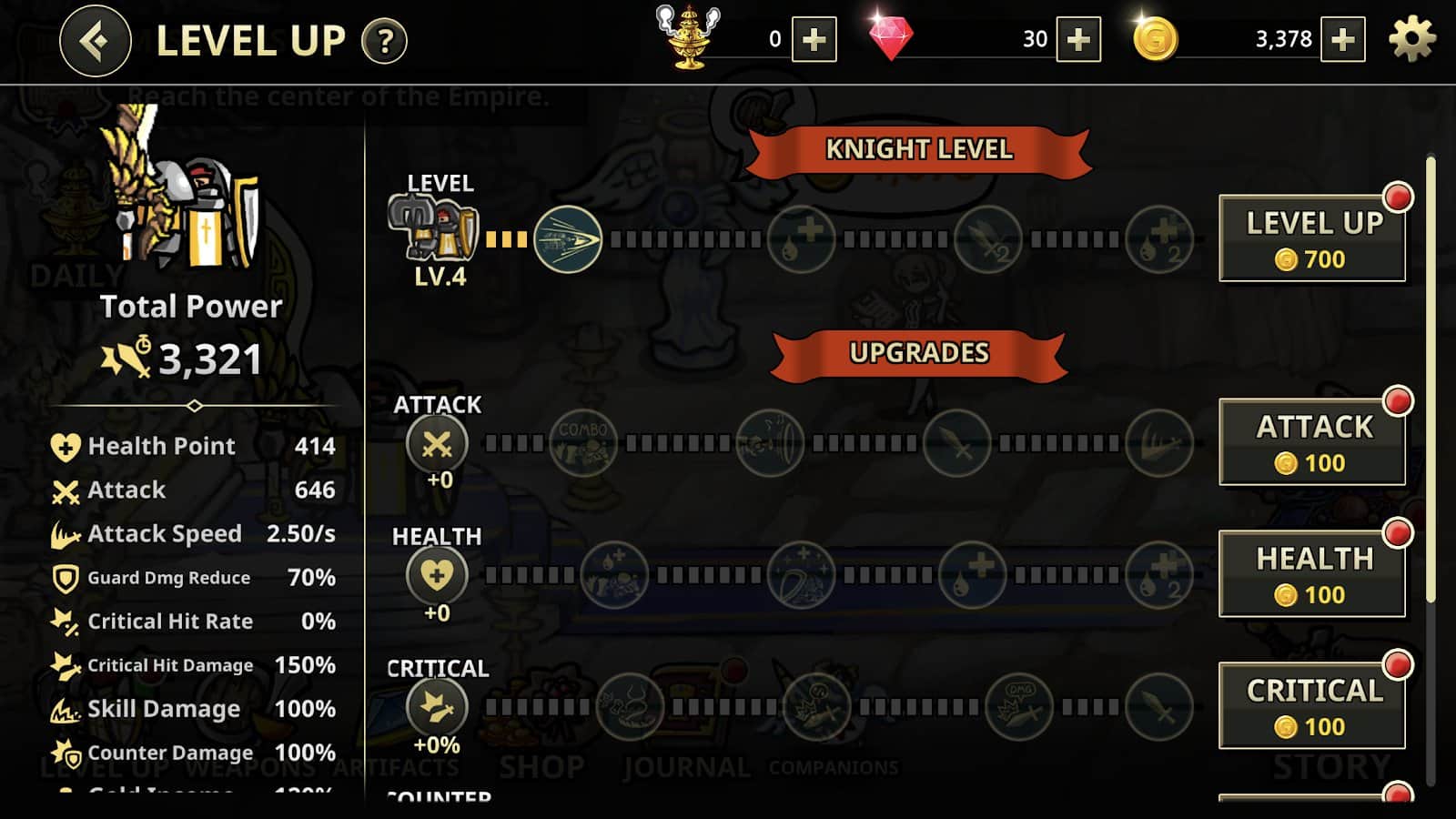- Karakter ve silah geliştirme. Şövalyeyi geliştirin, ona pasif yetenekler öğretin ve silahınızı optimal savaş verimliliği için ayarlayın. Sizi birçok stratejik fırsat bekliyor.
