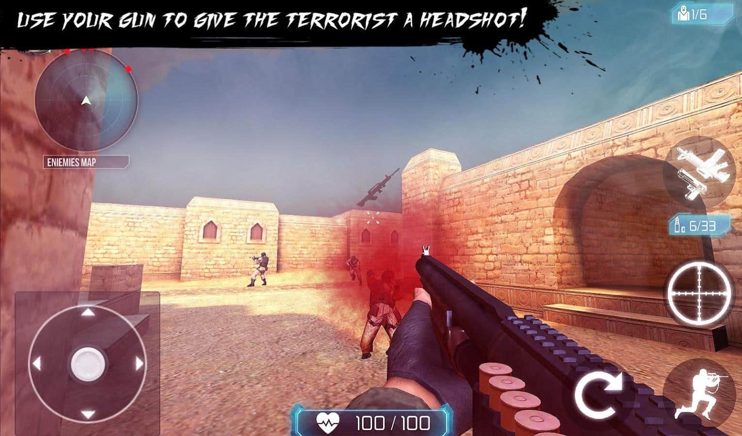 Terörle Mücadele-SWAT Saldırısı – elinizde bir seçkin birimi kontrol edeceğiniz ve teröristleri yok edeceğiniz harika bir android oyunu. Silahınızı kapın ve düşmanlarınızı izleyerek oyunun çeşitli lokasyonlarını keşfedin. Hedeflerinizi vurmak için telefon ekranınıza dokunun. Yok ettiğiniz her düşman için oyun puanları kazanacaksınız, bu puanları yeni silahlar satın almak veya ek lokasyonlar açmak için harcayabilirsiniz. Birinci şahıs bakış açısından oynayın ve mermilerinizi dikkatlice takip edin, düşmanınıza zafer şansı vermeyin. Oyun, mükemmel grafikleri ve basit kontrolü ile sizi mutlu edecek.