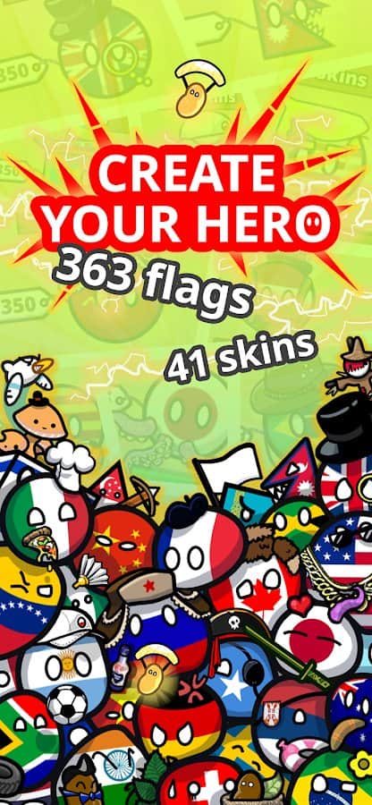Countryball Patates Kaosu - Tamamen yeni bir karakter yaratın ve çok oyunculu modlarda birçok savaşta aktif bir şekilde yer alın! Çeşitli savaşlar ile oyunu geçerken büyük bir çeşitliliğe sahipsiniz: klasik, kraliyet, bilgi yarışmaları, kayıklarda gezme. Ayrıca, mizahı kolayca kullanın ve daha fazla 363 bayraktan ilginç nesnelerle komik memler oluşturun. Avatarınıza belirli bir bayrak koymak istemiyorsanız, sadece 41 kostümden birini seçin. Eğlenceli mini oyunları geçin, yeni rekorlar kırın ve rakiplerinizi yenin!