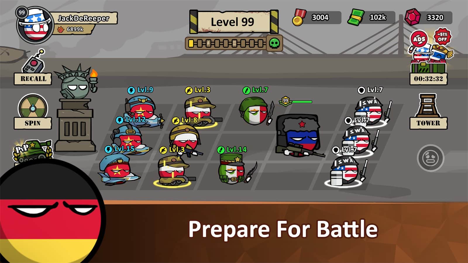 "Countryballs - Zombi Saldırısı" dünyasına hoş geldiniz; burada ülkenizi zombilerin istilasından koruyan bir lider oluyorsunuz. Bu heyecan verici strateji oyunu, sizi kıyamet sonrası bir maceraya sürüklüyor; burada hayatta kalmak ve dünyayı ölülerin elinden geri almak için diğer uluslarla birleşmelisiniz. Favori kantribolunuzla oynayın, savaşçılarınıza güç katın ve geliştirip yeni birimleri satın alarak savaş alanına yerleştirin. Zombilerle savaşırken ve zafer kazanırken strateji önemli bir rol oynar. Oyun özellikleri arasında sınırsız oyun süresi, zorlu çatışmalar, özel kantribollar, sürükleyici oyun deneyimi ve etkileyici müzikler bulunmaktadır.
