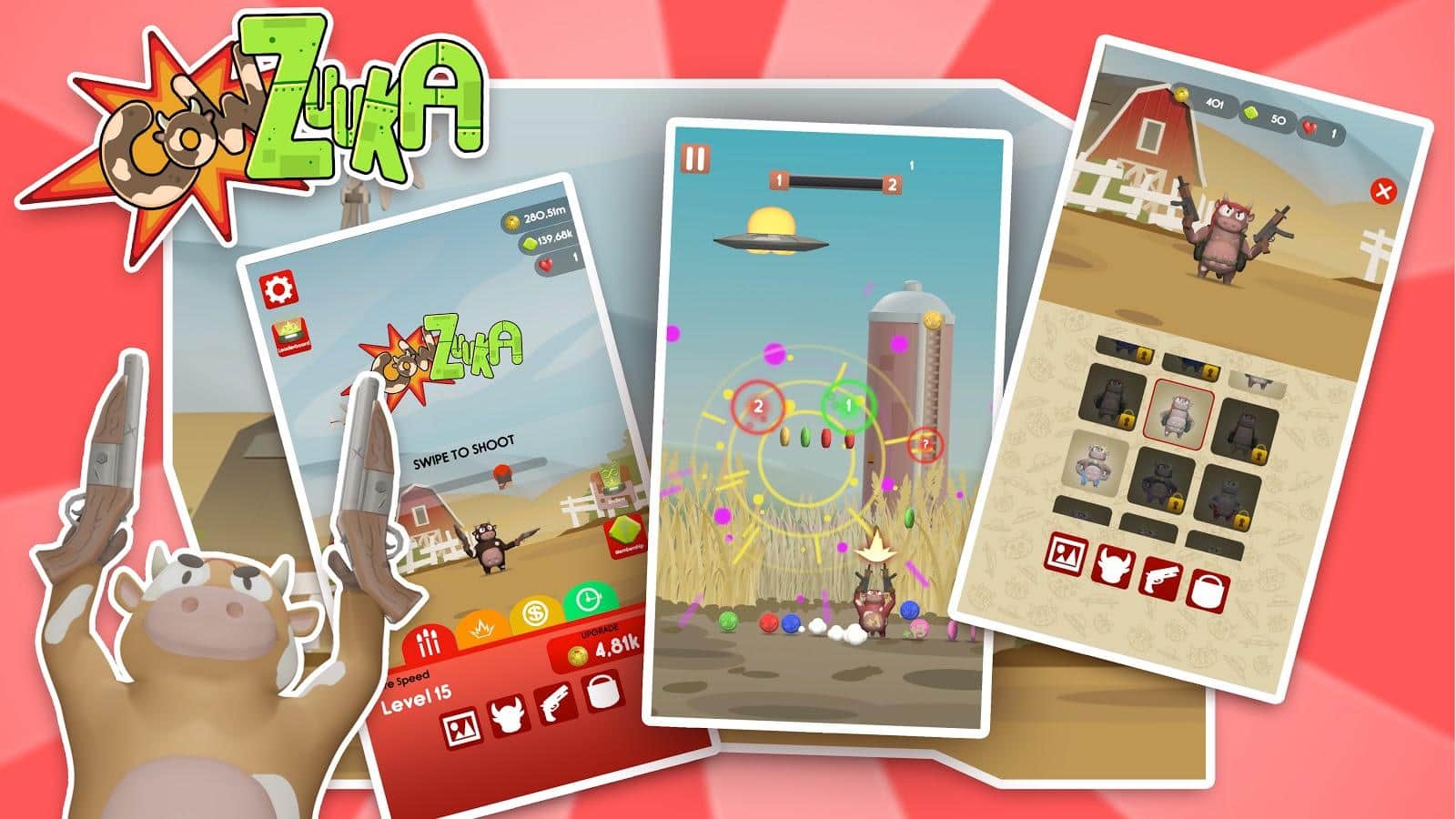 Cowzuuka - Yerel çiftlikteki ineğe, gezegeni ele geçirmeye çalışan uzaylıların saldırılarına karşı yardımcı olun! Güçlü bir silah alın ve hayvanı farklı yönlere hareket ettirmeniz gereken, mermilerin uzay gemisine çarparak tamamen yok etmesi gereken zorlu seviyelere geçin. İyi başarılar elde edin, kendi savaş stilinizi bulun, diğer oyuncular arasında en iyi olun ve liderler sıralamasına girin, her türlü oyun modunu deneyin ve tüm eylemlerin uyumlu animasyonlarına uygun harika bir müzik dinleyin.