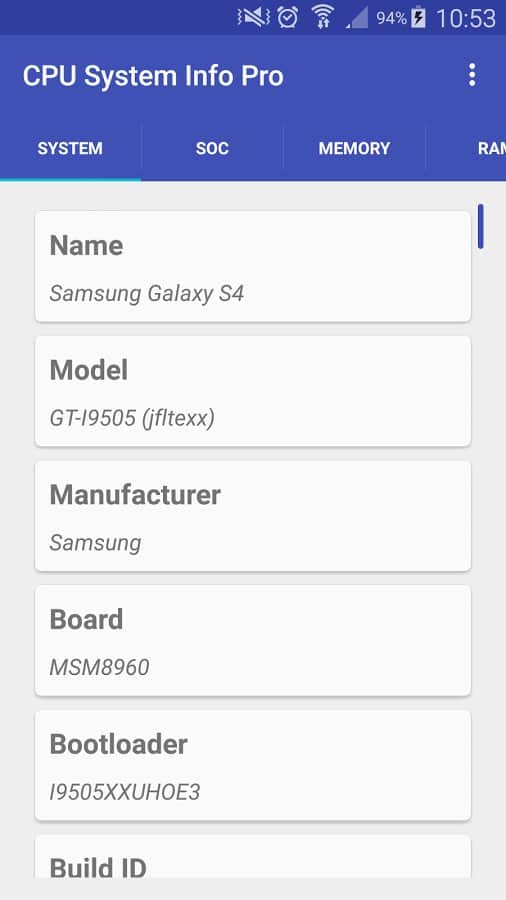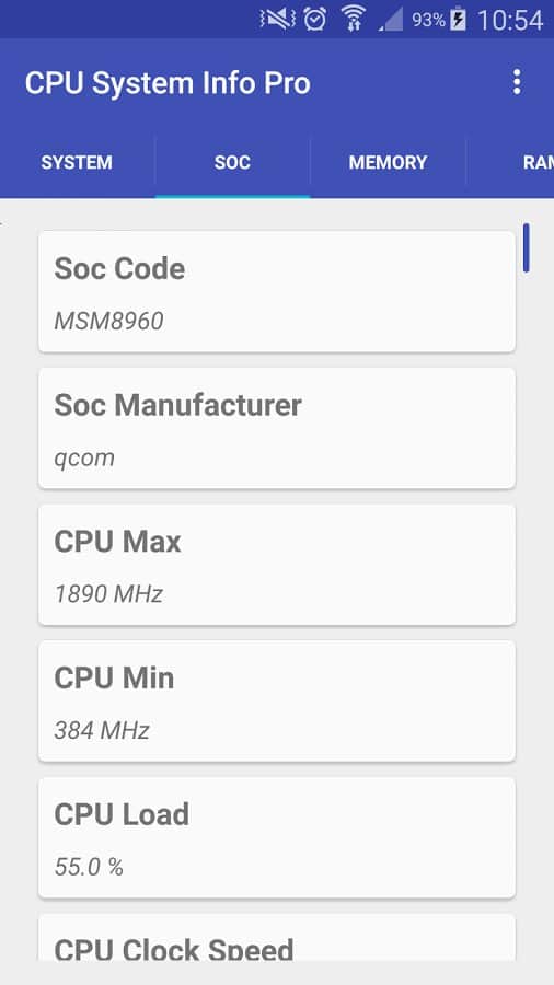 CPU Donanım Sistem Bilgisi Pro - Tek bir basit uygulama ile akıllı telefonunuz hakkında birçok yeni şey öğrenin. Burada akıllı telefonunuzun içinde neler olduğunu, modelini, Android sürümünü, RAM'ini ve daha fazlasını öğrenebilirsiniz. Ayrıca, tüm hesaplamalar gerçek zamanlı olarak gerçekleşir, bu da verilerin sürekli güncellendiği anlamına gelir. Bu şekilde, akıllı telefonunuzun belirli bir çalışma anında ne kadar yüklü olduğunu öğrenebilirsiniz.