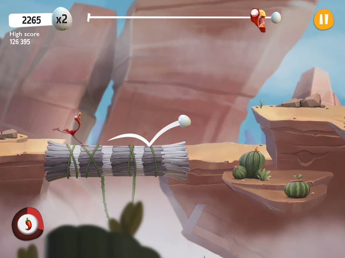 Kırık Acele – Android için bir koşu oyunu, burada sevimli devekuşuna çocuklarını tehlikeden korumasına yardım edeceksiniz. Bu oyunda, yumurtaları yavrularıyla korumakla görevli baba devekuşunu yöneteceksiniz. Bu görevle başa çıkamadı ve şimdi oyunun çeşitli lokasyonlarında koşup tüm yumurtaları toplamaya çalışacak. Koşun, zıplayın ve yolunuzdaki tüm engelleri aşarken, devekuşunuzu hızlandırmak için acı biberleri toplamaya çalışın. Tüy ve harita koleksiyonunuzu toplayın ve böylece enerjinizi artırın. Bu oyunda en iyi sonuçlarınızı gösterin ve bunu arkadaşlarınızla paylaşın. Oyunda yolculuğunuzda size yardımcı olacak üç benzersiz bonus ve devekuşu için 5 eşsiz ayar bulunmaktadır.