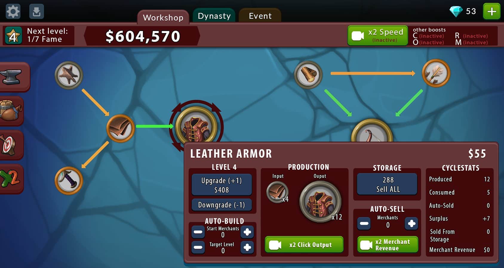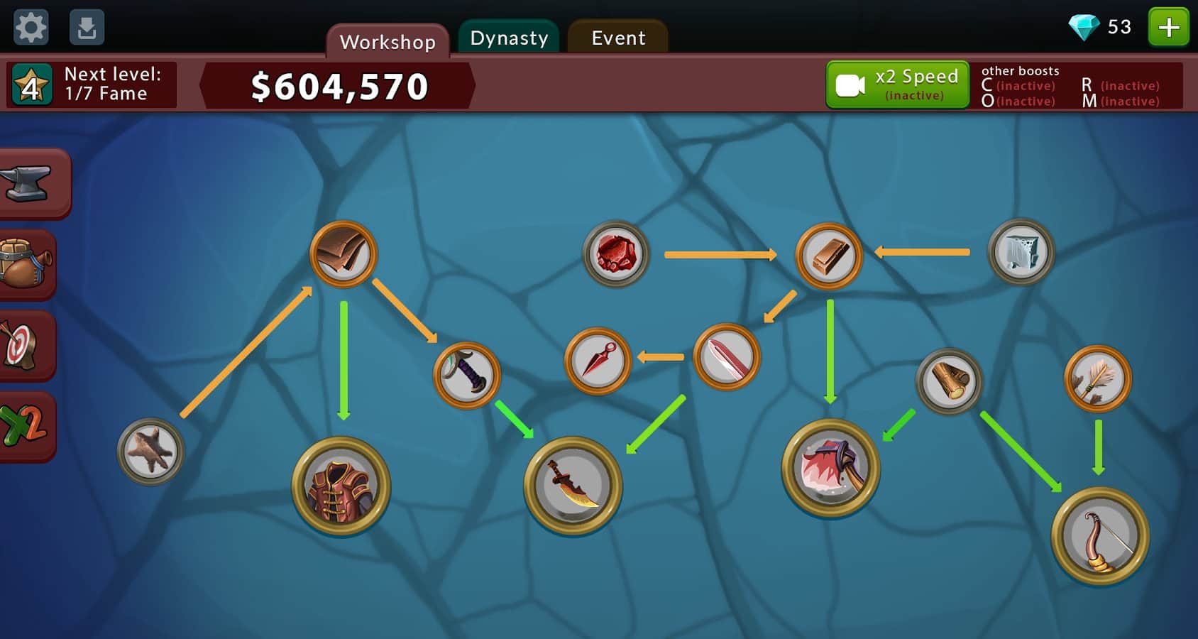 Zanaat Tıklayıcı - bu oyun, sıradan tıklayıcılardan çok farklı, çünkü ekrana sonsuz sayıda tıklamak mümkün değil. Çeşitli ürünlerin üretiminde bir imparatorluk kurmanız gerekecek. Başlangıçta sıradan ağaçları toplayıp satacaksınız, ardından bunlardan sopa, yay, ok ve daha fazlasını yapabileceksiniz. Bir sonraki seviyeye geçmek için belirli bir miktar para kazanmalısınız. Üretiminizi geliştirin ve yükseltin, ancak bunu akıllıca yapın.