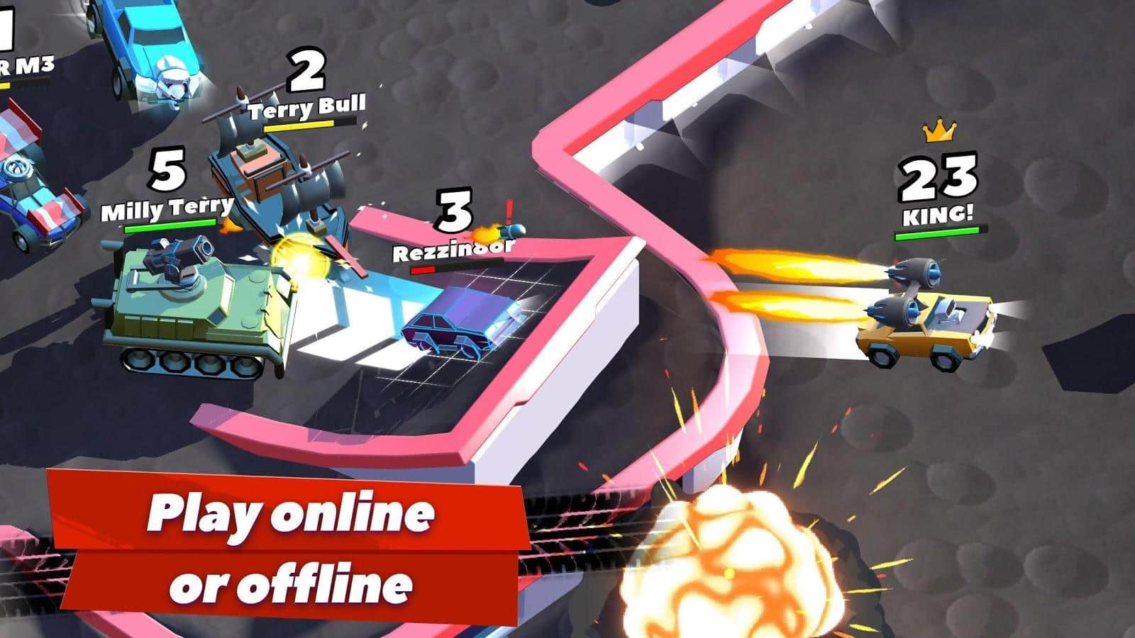 Crash of Cars" is an excellent multiplayer game. In the game, you are given the choice of a car to travel through various locations and collect golden crowns, which will be useful for you in the further game. But it will be quite difficult to do this, as other players will be knocking you down, shooting, and simply destroying you.