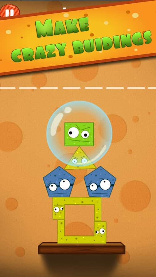 Çılgın Binalar - Android için bir oyundur, bu oyunda çeşitli parçalarla bir piramit inşa etmeniz gerekiyor. Oyunun amacı, size farklı yüksekliklerde çeşitli parçalar verilmesi ve bunlardan daha yüksek bir piramit inşa edip belirli bir süre boyunca onu korumanızdır; böylece kendi rekorunuzu çizebilirsiniz. Bu oyunda sizi 64 eğlenceli seviye, 17 farklı şekil ve rekor kırmanızı ve onu korumanız için sizi zorlayacak harika bir fizik bekliyor.