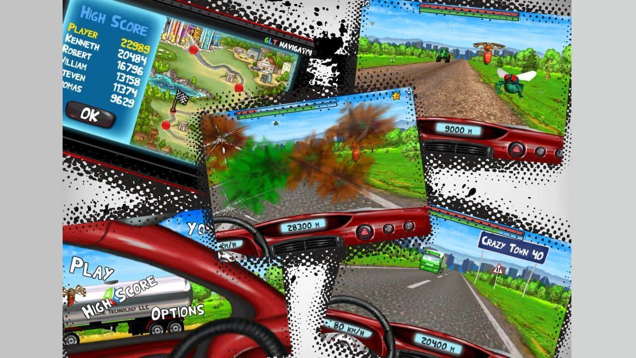 Çılgın Sürüş - Android için yarış, sürüş ve arcade karışımının bulunduğu bir oyundur. Şehre ulaşmak için yıldızları toplarken karşıdan gelen araçlardan kaçınmalısınız, yol boyunca sizi rahatsız edecek çeşitli haşereler, sivrisinekler, böcekler ve diğer böcekler, ön camınızı kırmaya çalışacak. Aracınızı ivmeölçer ve parmaklarınızla kontrol ederek böcekleri eziyorsunuz.