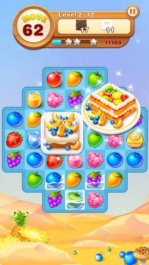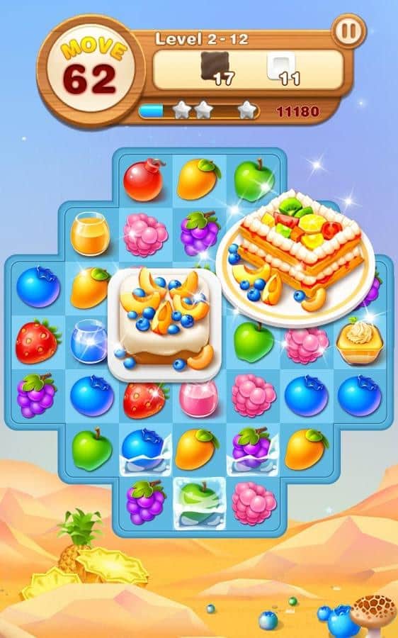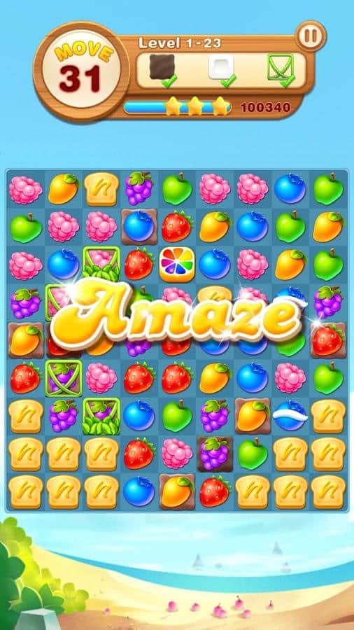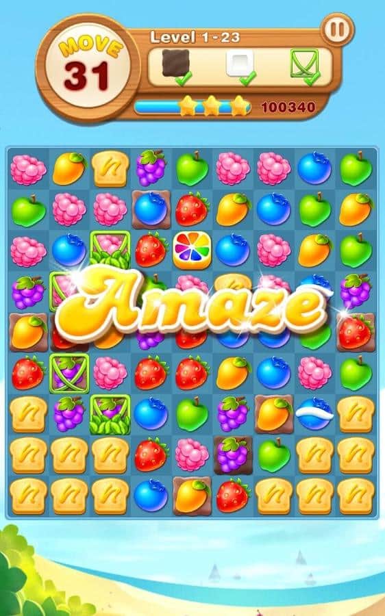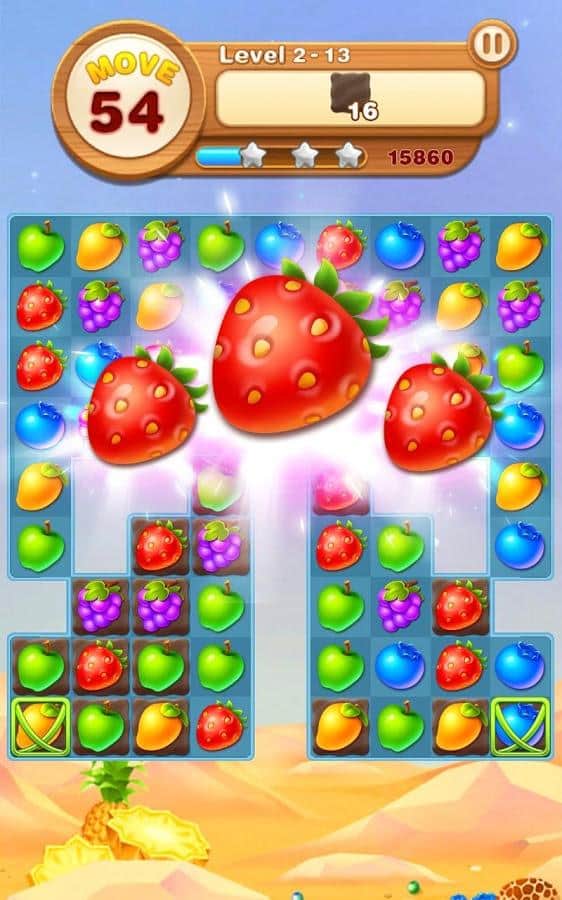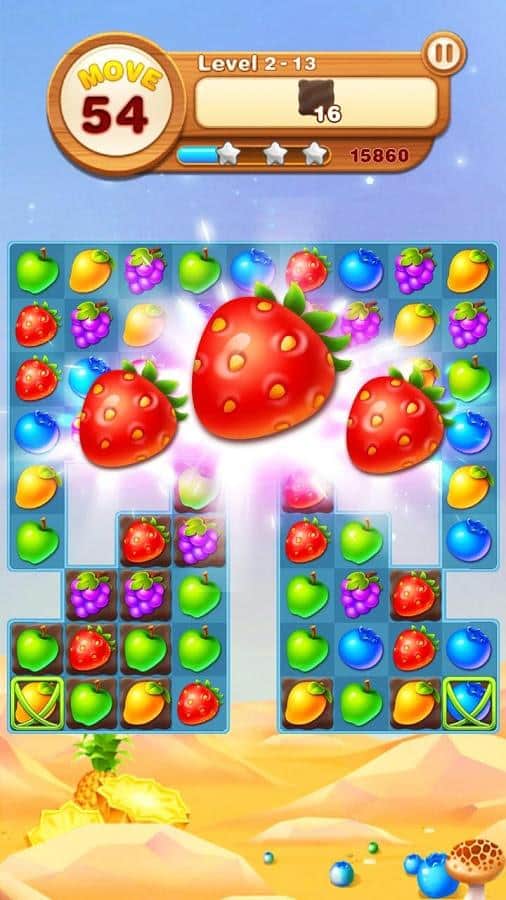Çılgın Meyve – Android için bir üçlü eşleştirme oyunu, meyve ülkesinde bir yolculuğa çıkacaksınız. Göreviniz, renkleri aynı olan üç veya daha fazla meyveyi sıraya dizmek ve patlatmaktır. Mümkün olduğunca uzun bir meyve zinciri oluşturmaya çalışın, böylece zincirleme bir reaksiyonu başlatın ve mümkün olduğunca fazla meyveyi patlatın. Ödül olarak çeşitli güçlendirmeler kazanın ve zor seviyeleri daha hızlı geçin. Tüm görevleri ve misyonları yerine getirin ve her seviyeyi minimum hamleyle geçerek her seviyede üç yıldız kazanın. Rekor sonuçlar elde edin ve arkadaşlarınızla yarışın. Oyunda üç eşsiz konum ve 144 lezzetli seviye bulacaksınız.