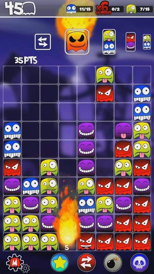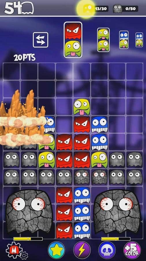 Çılgın Hayaletler – sevimli hayaletlerden sıralar oluşturun ve harika özel efektlerle patlatın. Bu android bulmacasında, hayaletlerle dolu bir dünyaya adım atacaksınız, burada ana göreviniz onlardan sıralar oluşturmak ve hayaletleri alandan kaldırmak olacak. Bu oyunun her yeni seviyesi size alışılmadık görevler ve bulmacalar sunacak. Tüm seviyeleri başarıyla geçin ve en iyi oyuncularla yarışmak için yeterli puan kazanın. Kombinasyon vuruşları yapın ve patlamalar zincirini başlatacak harika bonuslar kullanın. Oyunda 199'dan fazla seviye bulunuyor, hepsini geçin.