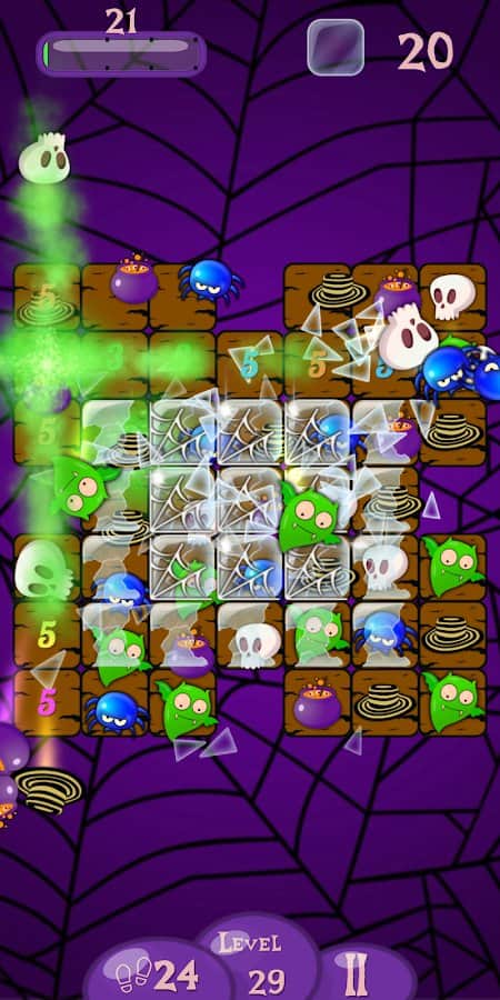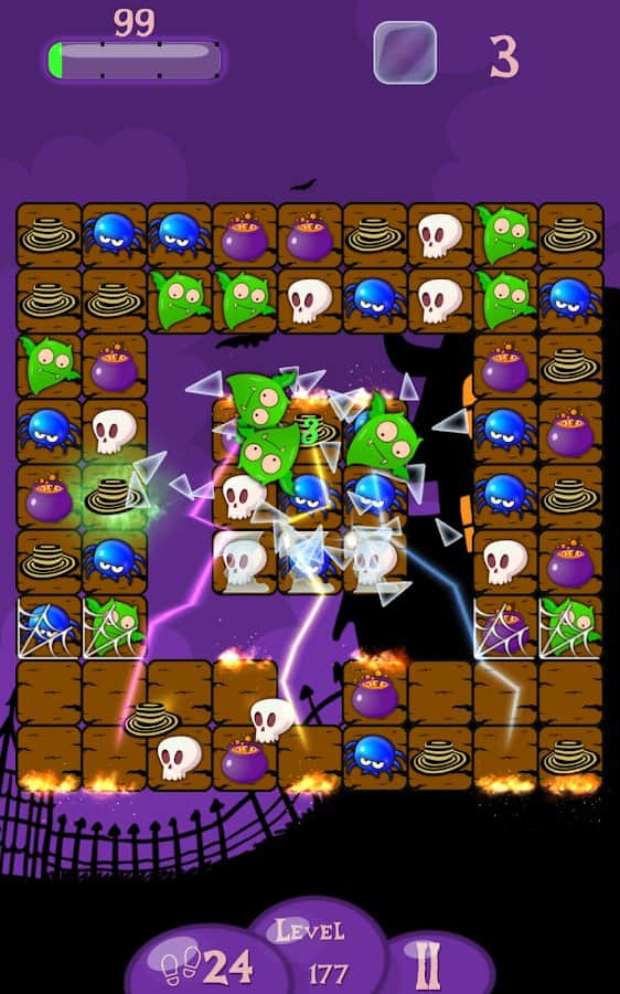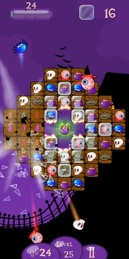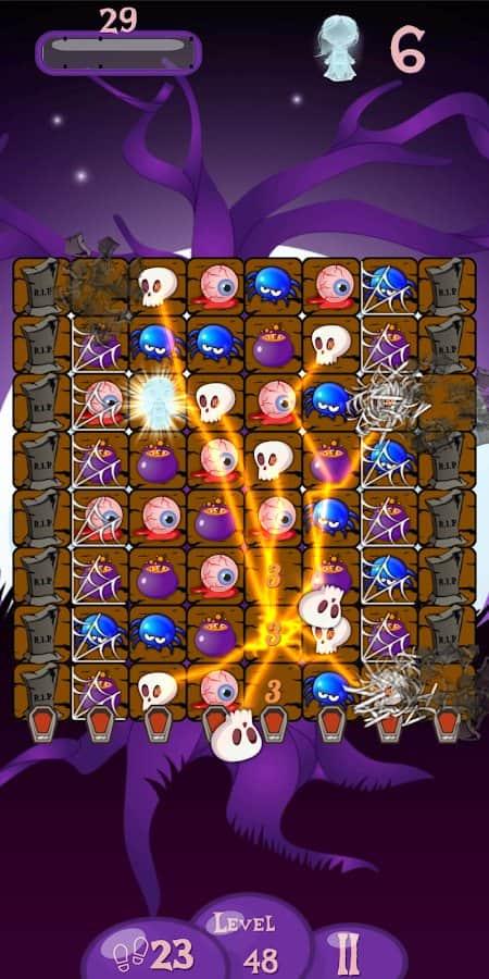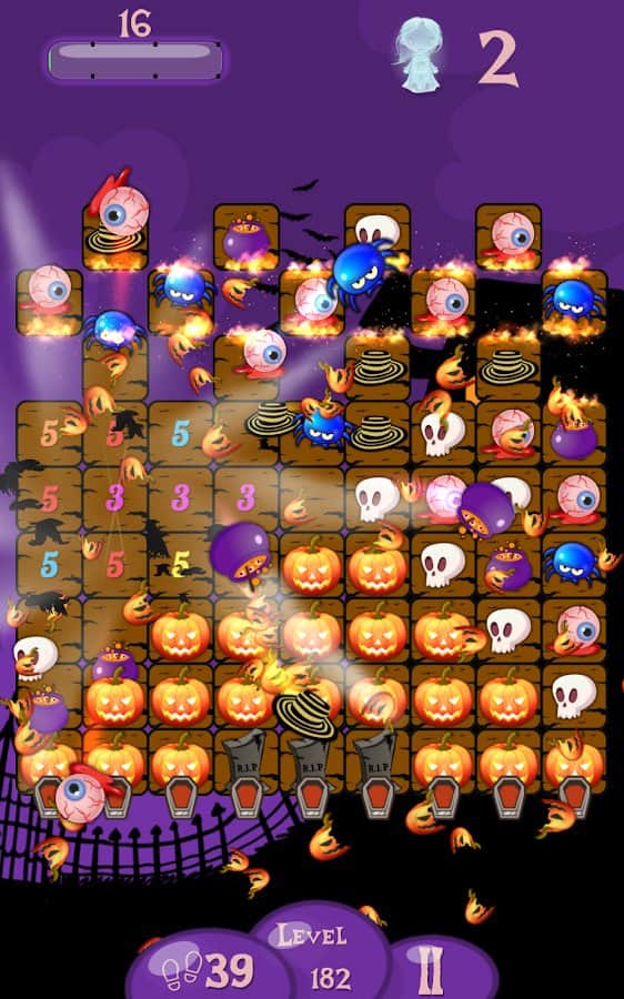 Mutlu Cadılar Bayramı! Aynı taşları dizerek birleştirin, T veya L şeklinde yerleştirin ve bonuslar kazanın! Hayaletlere huzur bulmalarında yardımcı olun ve tüm balkabaklarını kırın: böylece bir sonraki seviyeye geçebilirsiniz. 288'den fazla farklı zorluk seviyesine sahip seviyeler bekliyor. Hepsini geçmek için sabrınız ve zekanız yeterli olacak mı? Korkutucu atmosfer ve kan dondurucu müzik sizi sıkılmaktan alıkoyacak. Sonuçtan memnun değilseniz seviyeleri yeniden oynayın, tüm yıldızları toplayın ve en iyi olun!