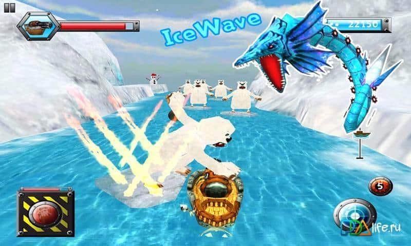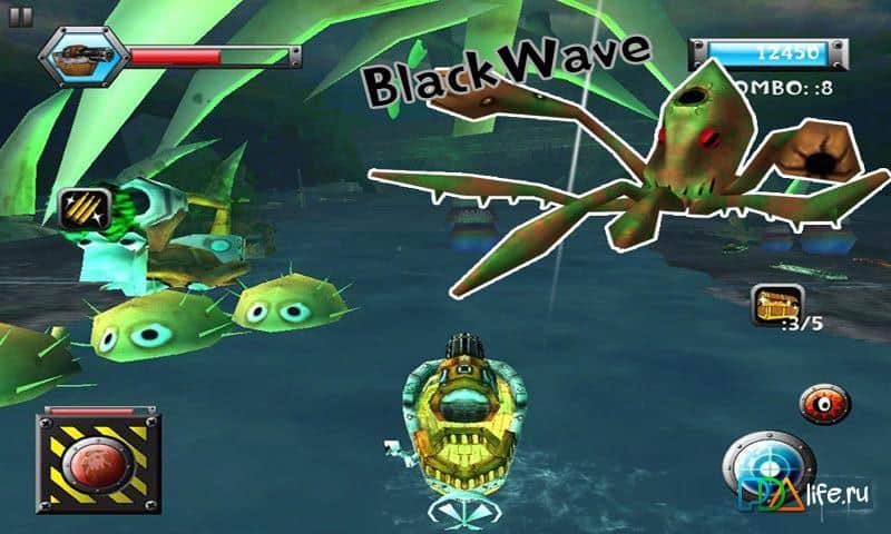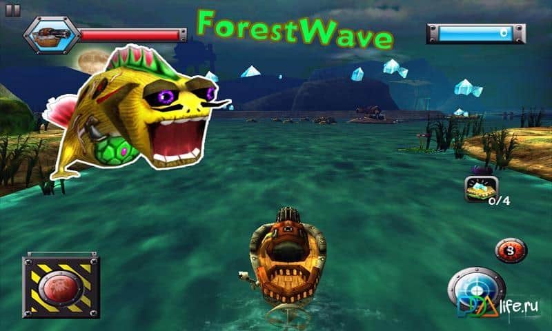 Çılgın Canavara Dalga - Android için bir oyun, burada geminizle dünyayı dolaşarak canavarlara karşı savaşacaksınız. Onları öldürmeli, ayrıca düşman üslerini ve korsan gemilerini taramalısınız. Envanterinizde bir makineli tüfek ve düşmanı daha iyi yok etmek için el bombaları olacak.