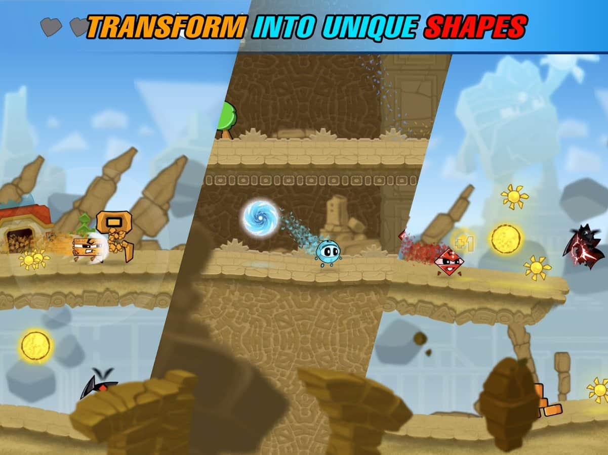 Çılgın Şekiller – cesur bir kahramanı kontrol altına alın ve onu tehlikeli bir oyun dünyasında yönlendirin. Bu android oyununda, şekil değiştirme yeteneğine sahip bir kahramanı yöneteceksiniz ve böylece düşmanları yok edeceksiniz. Uyum evrenini keşfedin ve düşmanların esir aldığı sihirli hayvanları kurtarın. Her bir şeklinizin benzersiz yeteneklerini pratikte kullanın ve rakiplerle savaşın. Zıplayın, koşun ve form koruyucusunun gizemini çözmeye çalışarak faydalı güçlendirmeleri toplayın. Yeni hayvanları keşfedin ve koleksiyonunuzu bu hayvanlarla zenginleştirin.