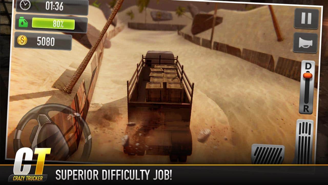 Çılgın Kamyoncu – Android için bir simülatör, burada kamyonu kontrol altına alacak ve çeşitli rotalarda yük taşıyacaksınız. Bu oyunda, kamyonunuzu engebeli arazide sürecek ve rotayı minimum kayıpla geçmeye çalışacaksınız. Her yeni seviyede oyunun zorluğu artacak ve tüm testleri geçmek için epey çaba göstermeniz gerekecek. Oyunda çeşitli hava koşulları ile karşılaşacak ve çöl ile ormanlardan geçeceksiniz. Tehlikeli bir yolculuğa çıkın ve oyunun tüm görevlerini tamamlayarak yeni yükleri ve rotaları keşfedin.
