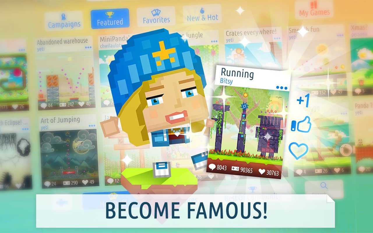 Createrria 2 oyunlarınızı oluşturun! – kendi oyunlarınızı sadece birkaç dakikada oluşturmanızı ve bunları arkadaşlarınızla paylaşmanızı sağlayan harika bir araçtır. Bir programcı veya sanatçı olmanıza gerek yok. Tüm gerekli araçlar gözlerinizin önünde. Angry Bird’e benzer bir şey oynamak ister misiniz? O zaman, kasklı ayı hizmetinizde, lastiği alıyoruz ve ateş ediyoruz… Seviyeleri çeşitli malzemelerle oluşturabilir ve oyuncuların bunları tamamen yok etmelerine izin verebilirsiniz. İlginç bir platform oyunu oluşturmak da sorun değil. Sadece birkaç dakikada seviye hazır.