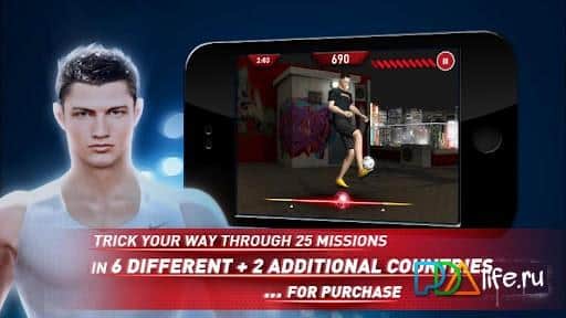 Cristiano Ronaldo Freestyle - oyun zaten kendini anlatıyor, ama yine de ana noktalarına değinelim. Öncelikle en havalı olanı - futbol efsanesi Cristiano Ronaldo ile oynuyorsunuz ve top ile çeşitli numaralar yapıyorsunuz. Cristiano'nun yanı sıra, yarışmalar sırasında birden fazla yıldızla karşılaşacak ve onlarla futbol topuyla fristayl yaparak rekabet edebileceksiniz. İnanılmaz numaralar, hareketler ve şakalar yaparak, sıralama seviyenizi artırabilir ve ödül miktarlarına göre sanal ustanızı spor ayakkabılardan tişörtlere kadar giydirebilir, ayrıca yıldızlara özgü aksesuarları seçebilirsiniz, örneğin küpeler! Ayrıca, sadece bir usta değil, hız, süre ve benzersizlikte yeteneklerinizi gösterebileceğiniz birkaç oyun modu da var!
