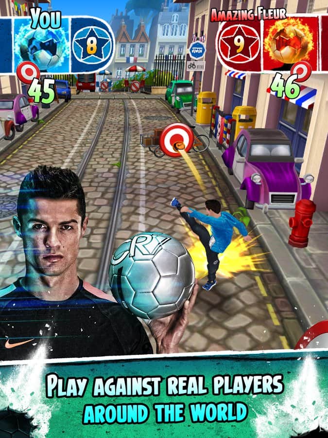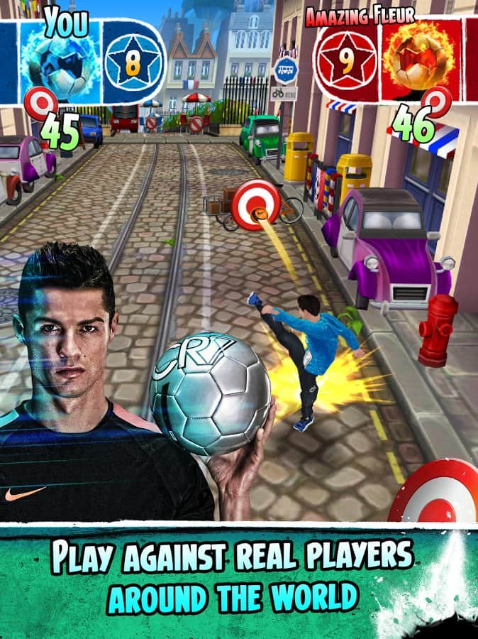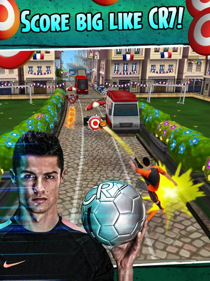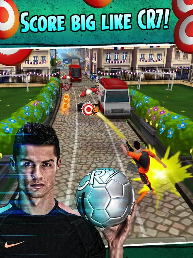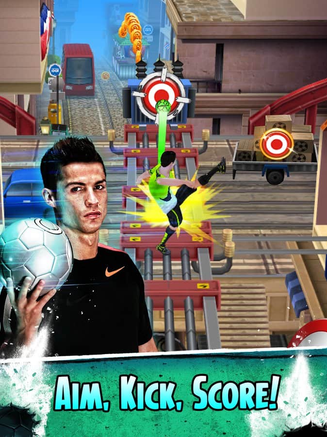 Cristiano Ronaldo: Kick'n'Run - Dünyanın en iyi futbolcularından biri olma şansını mı arıyorsunuz? O zaman Cristiano Ronaldo rolünde kendinizi deneyin ve bu ünlü futbolcuyla bir yolculuğa çıkın. Bu oyunu sıradan bir koşu oyunu olarak adlandırmak mümkün, ancak onun önemli bir özelliği var; engelleri futbol topuyla yok edebilirsiniz! Peki neden olmasın? Sonuçta bir futbolcu oynuyoruz. Bu oyun oldukça basit, ama bu onu sıkıcı yapmıyor; keyifli grafikleri ve basit kontrolleriyle oldukça iyi bir koşu oyunu ortaya çıkıyor.
