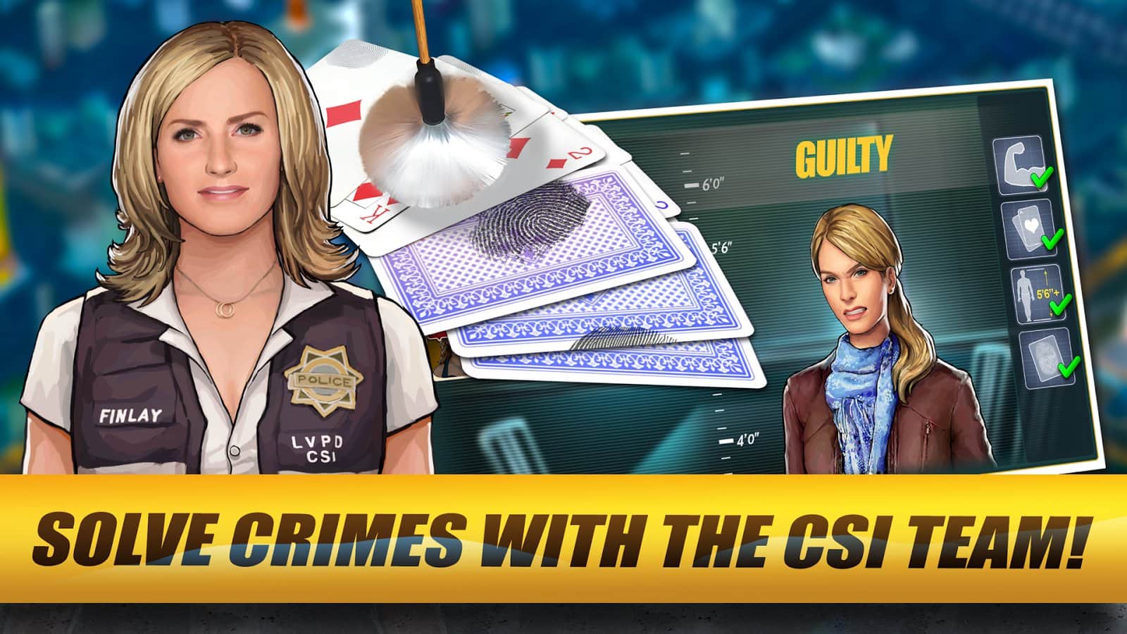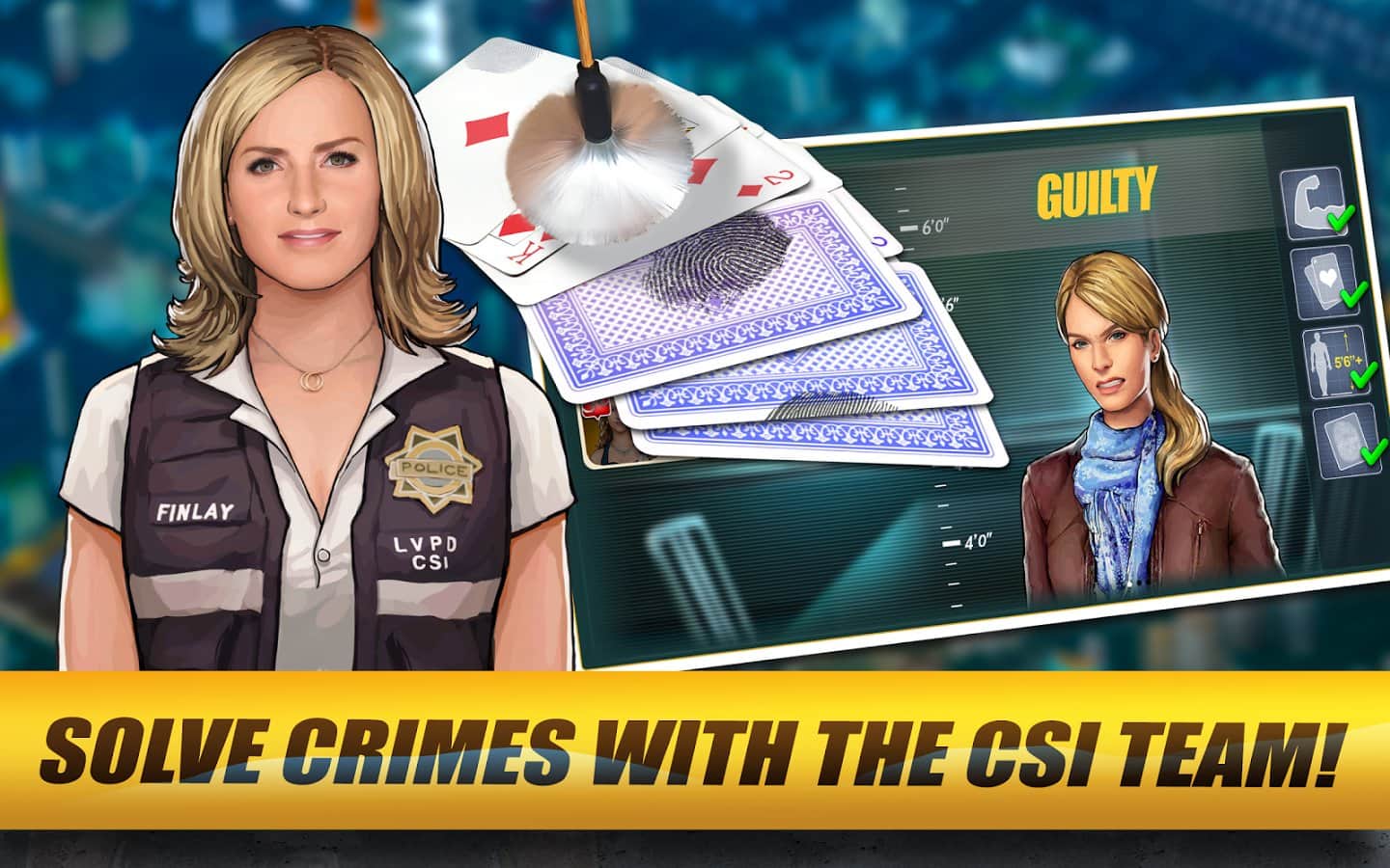 CSI: Gizli Suçlar - ünlü televizyon programının tarzında yapılmış bir android questidir. CSI ekibiyle birlikte suçları çözmek için efsanevi melekler şehri Las Vegas'a gideceksiniz ve sırlar ve gizemler atmosferine dalacaksınız. Suç mahalline gitmeniz, delil aramanız, tanıkları sorgulamanız ve suçluyu bulup adalete teslim etmeniz gerekecek. Las Vegas sokaklarını suç çetelerinden temizleyin ve bu şehre barış ve huzuru geri getirin.