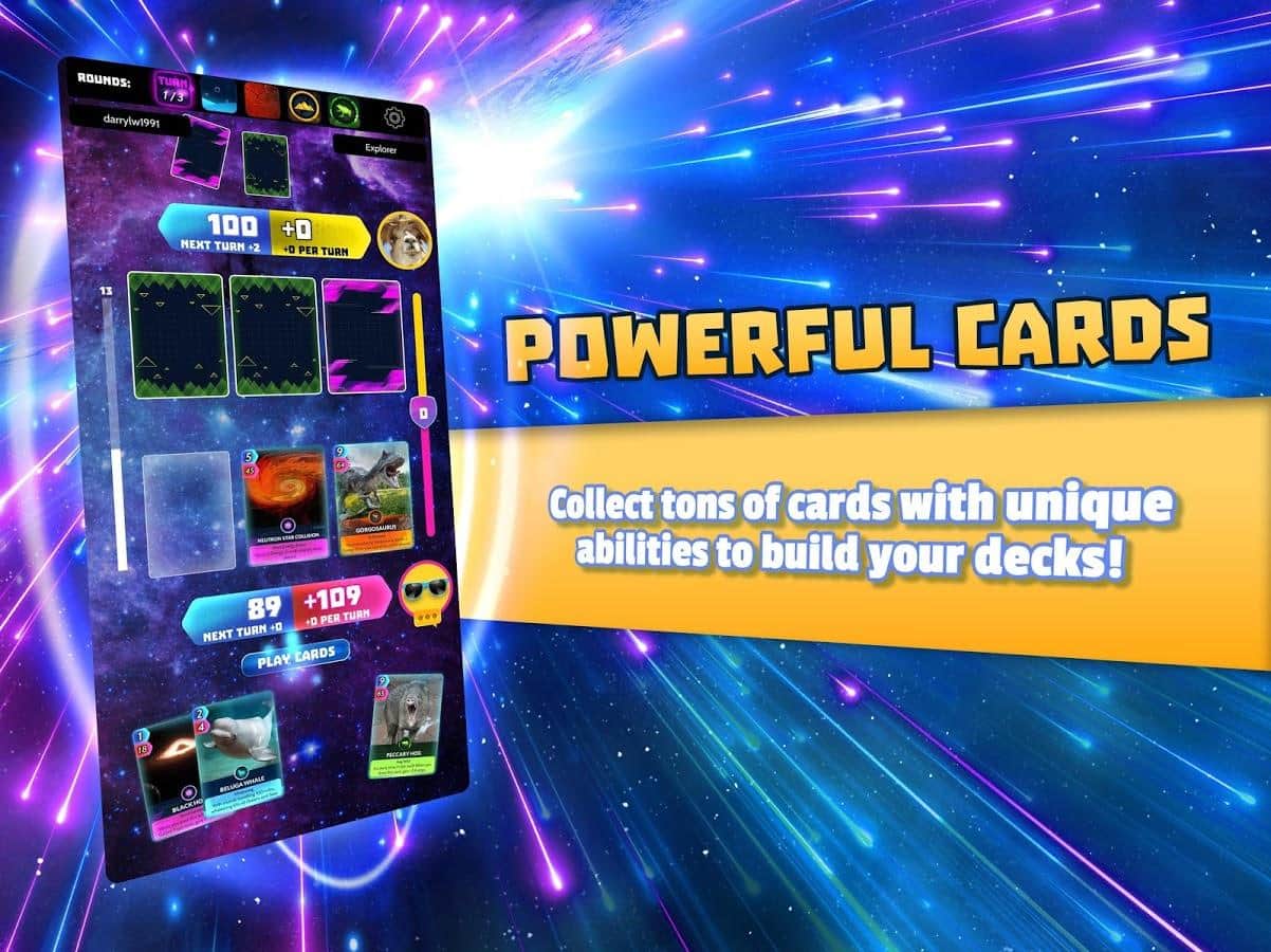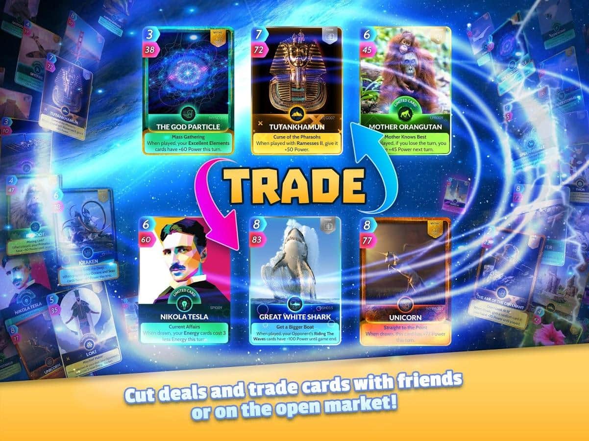 CUE Kartları TCG - belirli becerilere ve güce sahip efsanevi kartlarla savaşın, tüm dünya ile ticaret yaparak! Koleksiyon, savaşmak için birçok fırsattan oluşacak, ancak sınırlı bir desteyi doğru bir şekilde toplamak gerekiyor. Haftalık turnuvaları kazanarak ve yalnızca ödüller değil, aynı zamanda trofeler toplayarak en iyi oyuncular listesinin içine girin. Çift olanları kullanarak yeni kartlar açın. Uzay, dünya tarihi, matematik, modern teknolojiler, tanrılar, krallar, hayvanlar ve antik eserler gibi tematik setler.