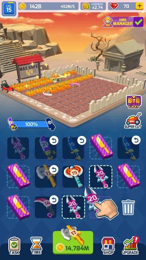 Çimleri Kes – Android için heyecan verici bir oyun, burada çimleri keseceksiniz. Çimlerinizin büyüme hızı fırtına gibi ve elinize çim biçme makinesi alıp çimleri kesmekten başka çareniz yok. Bu oyunda en iyi sonucu elde etmek için bıçakları, baltaları ve çim biçme makinelerini birleştirmeniz gerekiyor. Kendi çim alanınızda çimleri kesmek için paraları toplayın, iki aynı nesneyi birleştirin ve tamamen yeni nesneler elde edin. Bu oyun, oyunculara hızlı, kolay ve keyifli bir oyun süreci sunarak tıklayıcı unsurlar içeriyor. Kendinize özgü bıçak ve çim biçme makinesi koleksiyonunuzu toplayın.