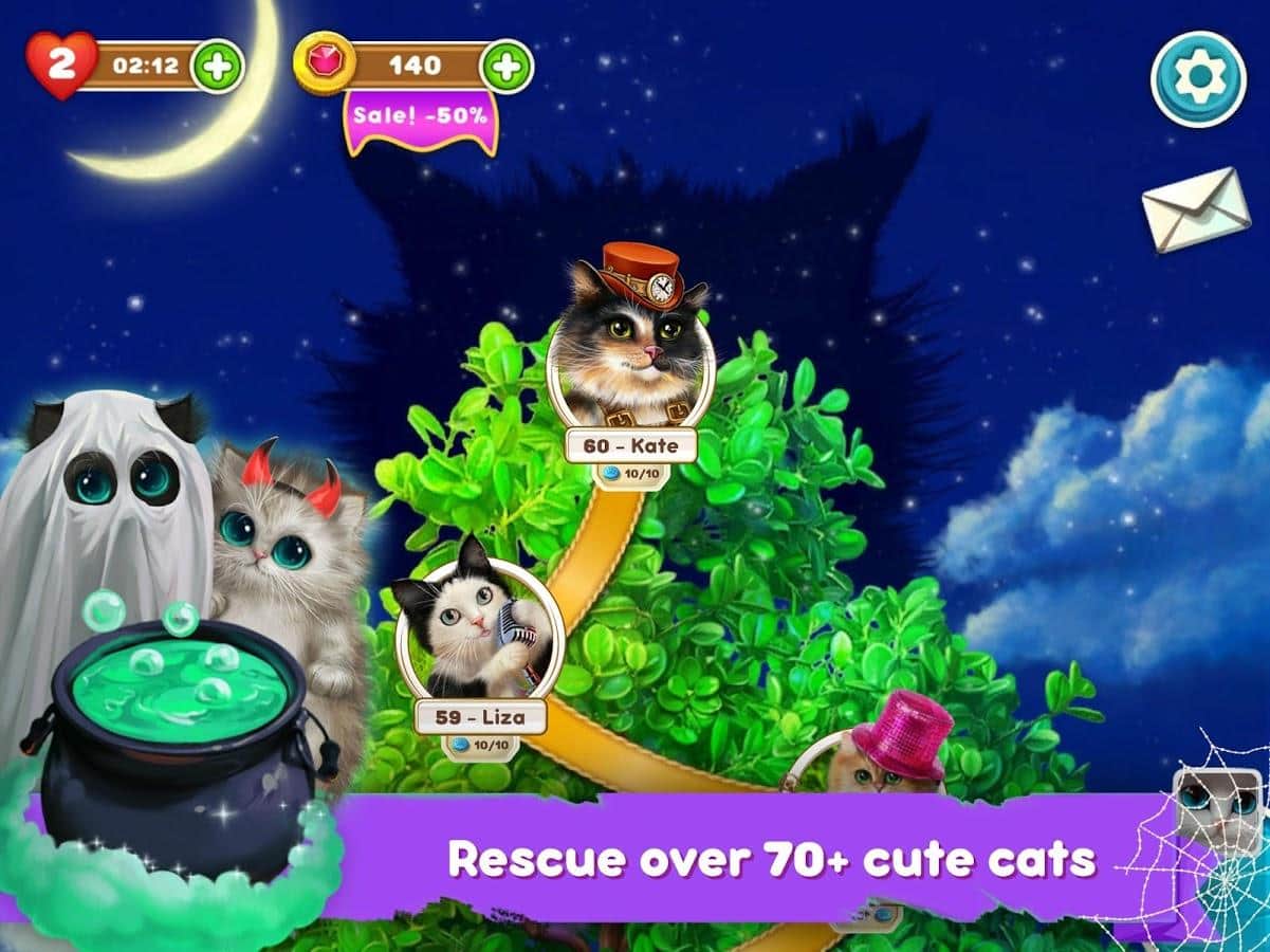 Sevimli Kediler: Büyülü Macera – üçlü eşleştirme türünde bir oyun, burada büyülü kedilere karanlık büyüye karşı yardım edeceksiniz. Karanlık büyücü kedileri büyüledi ve şimdi üç veya daha fazla renkli kristalden oluşan sıralar oluşturarak laneti kaldırmaları gerekiyor. Aynı renkten üç veya daha fazla nesne toplayın ve karanlık büyücüyle savaşta karşı koymak için yeterli sihirli güç kazanın. Kedileri esaretlerinden kurtarın ve birçok ilginç seviyeyi geçin. Zor bulmacaları çözün, ilginç görevleri tamamlayın ve harika canlı grafiklerin ve özel efektlerin tadını çıkarın.