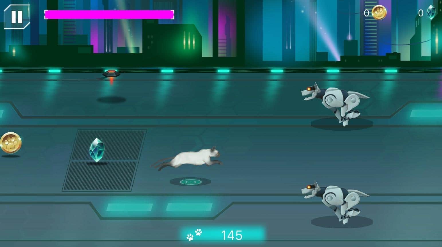Siber Kedisi: Uzay Koşucusu - fantastik bir tarzda yapılmış yatay bir koşucudur. Bu yüzden, sibernetik kediyle çeşitli tuzaklar ve düşmanlarla dolu lokasyonları aşarken, aynı zamanda çeşitli görevleri de yerine getirmeniz gerekecek. Ayrıca geliştiriciler, oyunun bileşeni olarak tam bir hikaye de eklemişlerdir, bu hikaye ile oyunu ilerledikçe tanışacaksınız. Stilize edilmiş grafikler ve futuristik müzik, tüm olayların atmosferini mükemmel bir şekilde yansıtıyor.