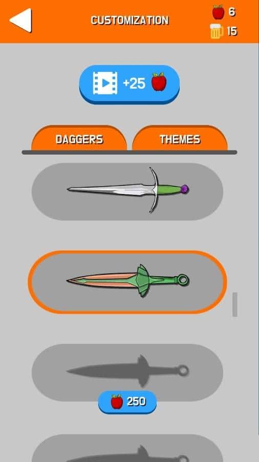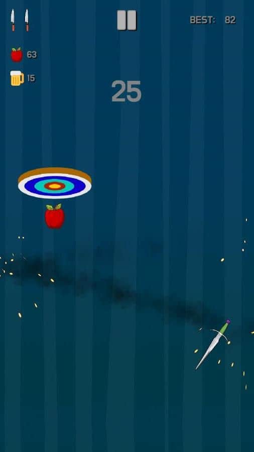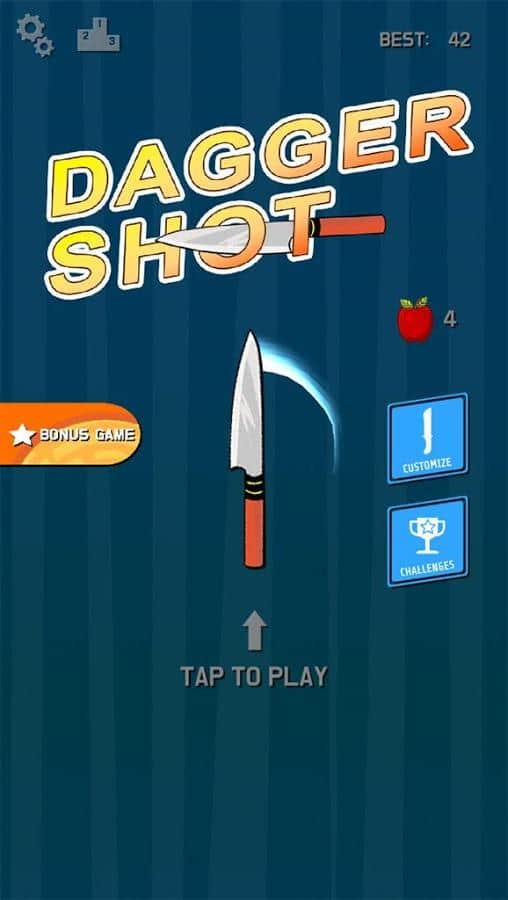 Dagger Shot - Android için heyecan verici bir oyun, burada hedeflere kama fırlatacaksınız. Bu oyunda bıçakları tam hedefe fırlatarak mükemmel refleksinizin ve isabetinizin ne kadar iyi olduğunu test edeceksiniz. Hedefleri parçalara ayırın ve ödül olarak yeni bıçaklar kazanın. Boş zamanlarınızda bu oyunu oynayın ve eğlenceli vakit geçirin. Sizi gevşetmeyecek bonus mini oyunları geçin. Yeni bıçakların kilidini açmak ve mevcut olanları geliştirmek için sayısız elma toplayın. Oyunda üç denemeniz olacak; eğer bıçak hedefe üç kez isabet etmezse ve aşağı düşerse oyun sizin için sona erecek.