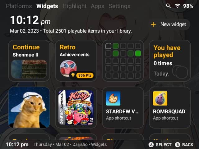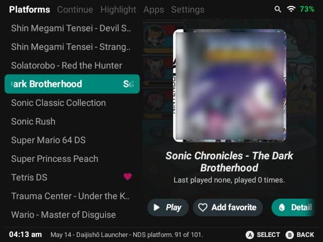 Daijishō - sadece bir başlatıcı değil, video oyunlarının altın çağına açılan kapının anahtarı. Bu eşsiz retro başlatıcı sayesinde devasa retro oyun kütüphanenizi kolaylıkla ve şıklıkla yönetin. Oyunlar, emülatörler, ipuçları - hepsi tek bir yerde, böylece anında oyun oynamaya dalabilirsiniz. Herhangi bir kısıtlama yok. Kendi retro oyunlarınızı ekleyin ve istediğiniz gibi özelleştirin. Estetik: modern dünyaya nostalji dokunuşu getirir. Arayüz, retro oyunlamadan ilham almıştır ve gerçek tutkunlar için oluşturulmuştur.