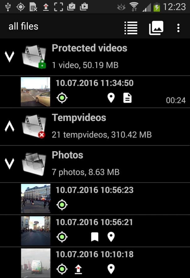 DailyRoads Voyager, Android için en iyi video kaydedici programdır. Bu program, yolculuk sırasında kesintisiz video kaydı yapmanızı ve fotoğraf çekmenizi sağlar. Program, her şeyi kaydeder ancak yalnızca gerçekten kullanıcıyı ilgilendirenleri saklar ve sürücüler için son derece faydalıdır; önemli yol olaylarının video kayıtlarını hızlı ve güvenli bir şekilde saklamayı sağlar. Android için DailyRoads Voyager'ı ücretsiz indirin ve yola hazırlıklı çıkın!
