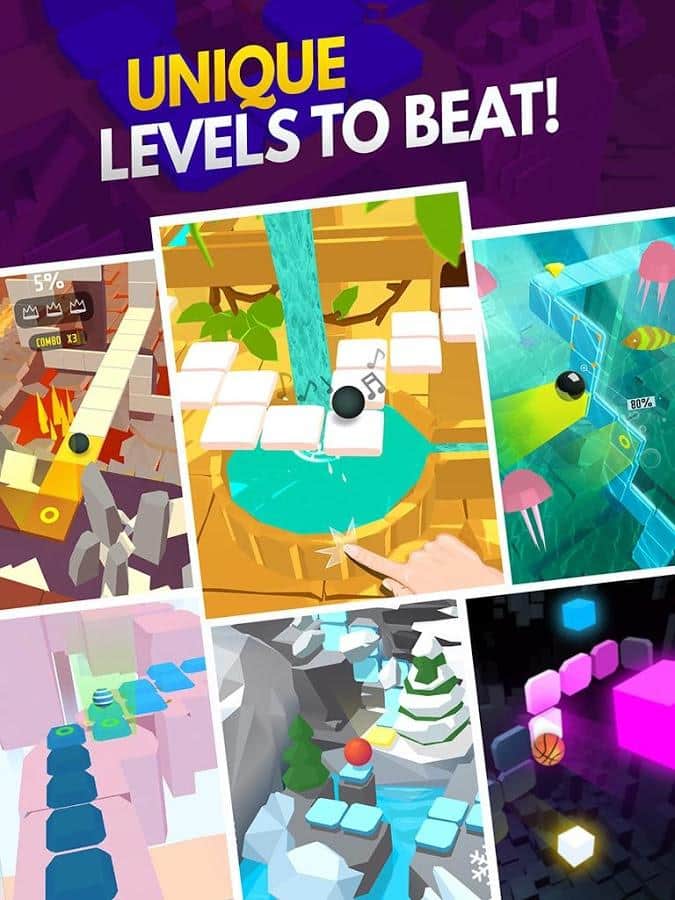 Küçük hata düzeltmeleri - android için harika bir müzik arkadası, onu geçmek için mükemmel bir tepki ve ritim duygusuna ihtiyacınız olacak. Eşsiz ve benzersiz dünyalarda hayatta kalmaya çalışırken, benzersiz eserler eşliğinde platformlarda zıplayacaksınız. Bu oyunda, sakin ve huzurlu seviyelerle yolculuğunuza başlayacak ve mükemmel tepki ve beceriler gerektiren zorlu seviyelerle sonlandıracaksınız. Her seviye, platformlarda zıplayarak yeni yollar oluşturacağınız bir labirenttir. Okyanus, tropik ada, terkedilmiş kale, çöl, lav, mağaralar ve kış mekanları gibi farklı ortamlarda seyahat edin.