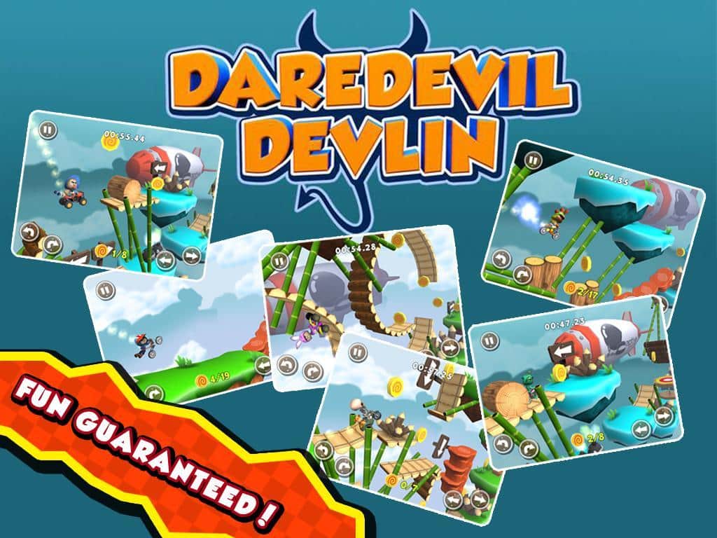 Daredevil Devlin - Android için motosiklet yarışları üzerine parlak bir arcade oyunudur. Birbirini takip eden virajlı parkurların bir kaç kilometresini aşmak, başarılı bir şekilde ilerlemek ve ödüller kazanmak için birden fazla bulmacayı çözmek zorundasınız. Eğlenceli karakterler ve çeşitli motosikletler, ayrıca yeterince zor seviyeler, bu tür oyunların tutkunlarını memnun edecektir. Ayrıca, iyi bir fizik ve heyecan verici bir oyun deneyimi, sizi sıkılmaktan veya oyunu bırakmaktan alıkoyacaktır. Bu yüzden tadını çıkarın ve bu oyunun rekorlarını kendi adınıza kaydetmek için düşüncelerinizi hareket ettirin! Cesur olun!