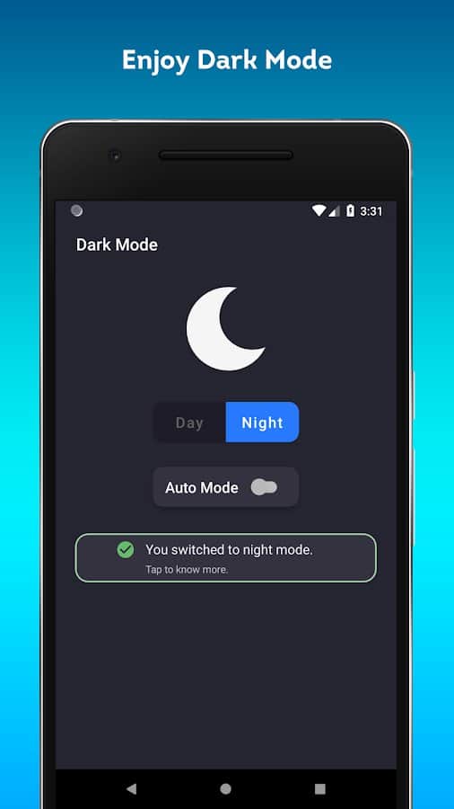Karanlık Mod - Gözlerinizi kötü aydınlatmadan ve telefondan yayılan zararlı ışınlardan korumak için cihazınızda karanlık modu etkinleştirin. Karanlık modun kullanımı birçok avantaj sunar: pil tasarrufu, göz yorgunluğunun azaltılması, mavi ışığın ve titremenin en aza indirilmesi gibi. Koyu arka planda beyaz metin daha okunaklı ve anlaşılır hale gelir, bu nedenle iki mod arasında sadece bir tıkla kolayca geçiş yapabilirsiniz. Uygulamayı sürekli kullanın ve belirgin bir farkı kendiniz görün.