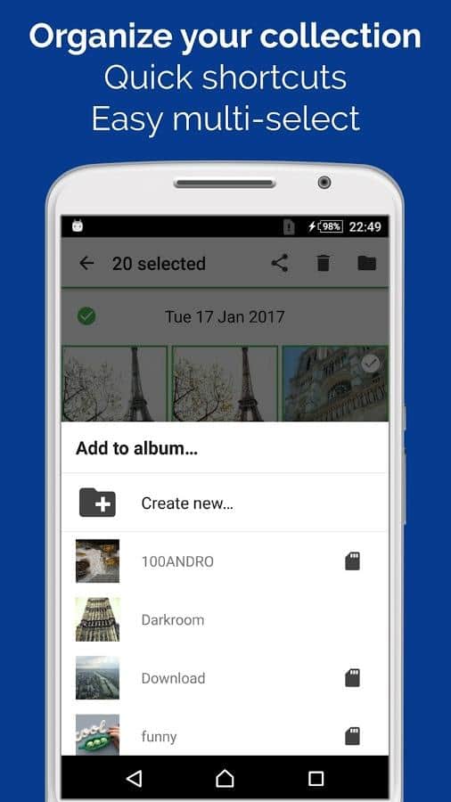 Karanlık Oda Galerisi Fotoğraf Editörü - Fotoğraf görüntüleme ve düzenleme için oldukça basit ve eğlenceli bir uygulamadır. Bir yandan, fotoğraflarınızla birlikte tüm fotoğraflarınızı maksimum konforla saklayabileceğiniz basit bir galeri. Onları kategorilere, gruplara veya tarihlere ayırma imkanı sunar. Ancak bunun yanı sıra, bu aynı zamanda fotoğraf düzenleme için güçlü bir araçtır. Burada, fotoğrafınızı tanınmaz hale getirebileceğiniz veya sadece hafifçe düzenleyebileceğiniz birçok farklı filtre ve efekt bulacaksınız.