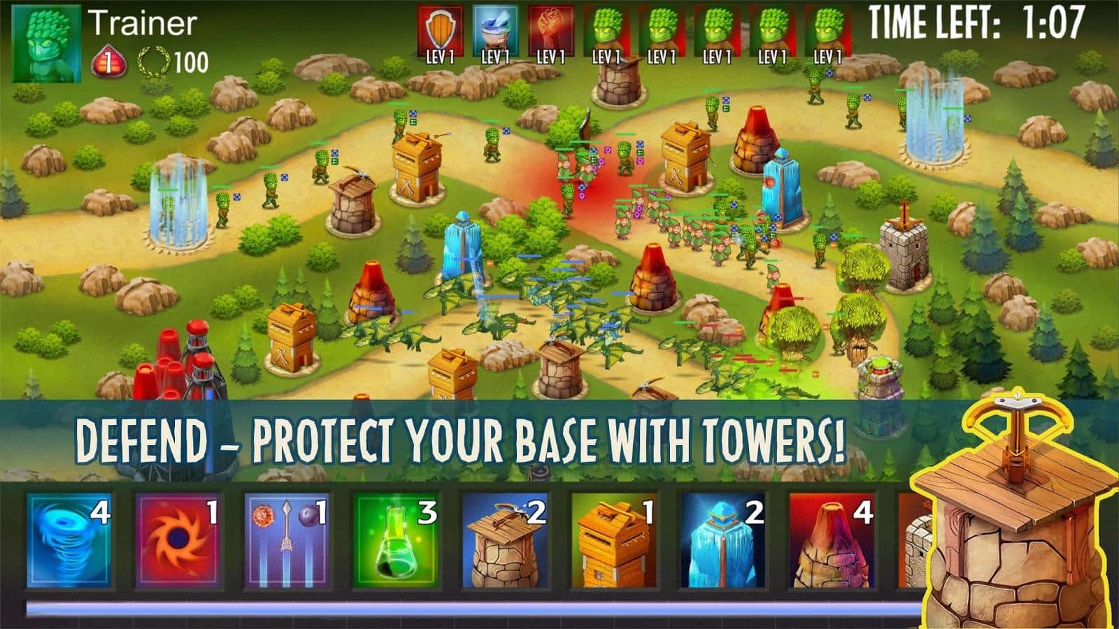 Dash veya Savun - gerçek zamanlı bir strateji oyunudur ve mekaniği, Tower Defense ve Attack Tower olmak üzere iki yönü birleştirir. Diğer bir deyişle, sadece kalesini savunmakla kalmayacak, aynı zamanda düşmanın kalelerine saldıracaksınız. Oyun, kule savunma türüne tamamen uygun şekilde, çeşitli savunma yapıları geliştirmeyi ve tam taktik modelleri oluşturmayı sağlar. Ayrıca, diğer oyuncularla rekabet etme şansının olduğu tam donanımlı çok oyunculu modun varlığını da belirtmek gerekir.