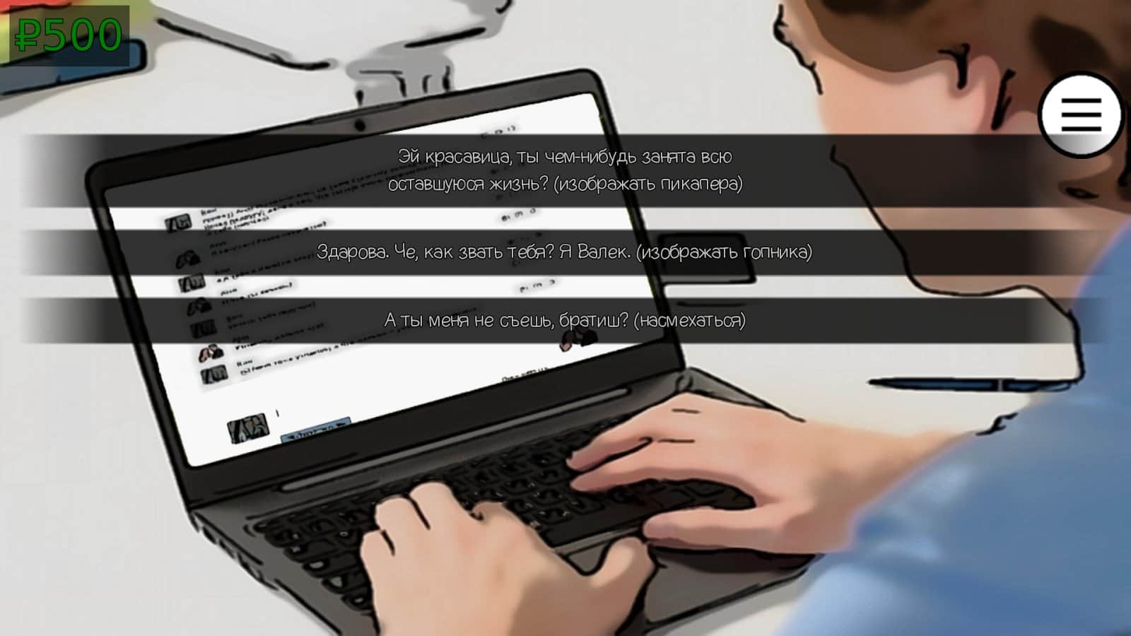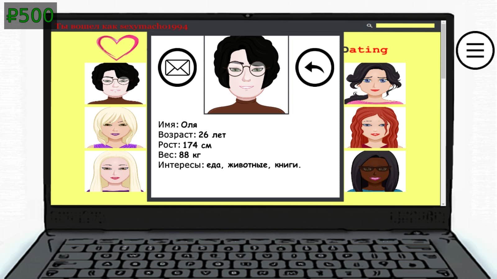 Randevu Günü - Flört Simülatörü, randevuya çıkacağınız bir görsel roman. Bu oyunda ana göreviniz, Valentina adında bir gencin internette kendisine bir kız arkadaş bulmasına yardımcı olmaktır. Kahramanımız oldukça utangaç ve yalnızca internette kızlarla tanışabiliyor. Randevuya çıkarken farklı maskeler takarak başka birine bürünüyor. Bu oyunda 15 kız, 5 randevu yeri ve kahramanın davranış modellerinden bazıları bulunuyor: serseri, flörtçü, rapçi, romantik ve diğerleri. Kızları randevuya davet edin ve buluşma yerini kendiniz seçin; kahramanınız bu sefer kim olarak ortaya çıkacak? Bir sonraki kızı randevuya çağırmak için önceki randevuları tamamlamanız gerekiyor. Oyunda kazanabileceğiniz veya kumarda kaybedebileceğiniz paralar var.