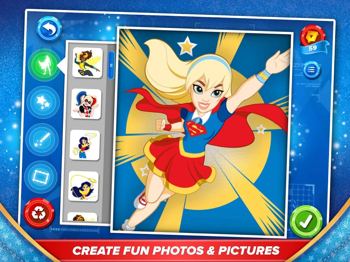 DC Süper Kahraman Kızlar – bu android oyununda, süper kahramanlar okulunda bulunacak ve harika kızlarla tanışacaksınız. Bu okulda her kızın, okulda küçük sınavları geçmek için kullanacağı benzersiz süper yetenekleri var. Oyunda Süper Kız, Harika Kadın, Katana, Zehirli Sarmaşık ve diğerleri gibi toplamda 7 benzersiz kız bulunmaktadır. Kahramanlara küçük mini oyunları geçmelerinde yardımcı olun ve sınavı geçmek için yeterli puanı toplayın. Oyun sırasında kahramanlarınızın fotoğraflarını çekin ve bunları arkadaşlarınıza gösterin. Kahramanlarınızın yer aldığı çizgi romanları ve animasyon filmlerini izleyin.