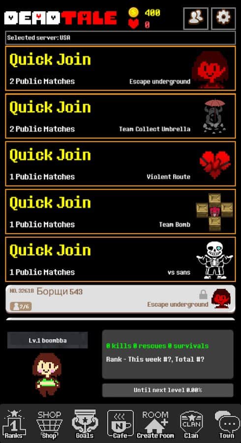 Deadtale Online: Saklan ve Kaç / Deadtale İnterneti için Undertale - Birçok mini oyunun bulunduğu oldukça sıradışı bir çevrimiçi kum havuzudur. Oyunun özü, içinde çeşitli modlarla birlikte birçok oyun odası bulmanızdır. Bu, sizi bir kişinin aradığı saklambaç olabilir ya da karakterin sizi periyodik olarak öldürmeye çalıştığı bir hikaye olabilir. Genel olarak, arkadaşlarınızla oynayabileceğiniz oldukça eğlenceli ve sıradışı bir derlemedir.
