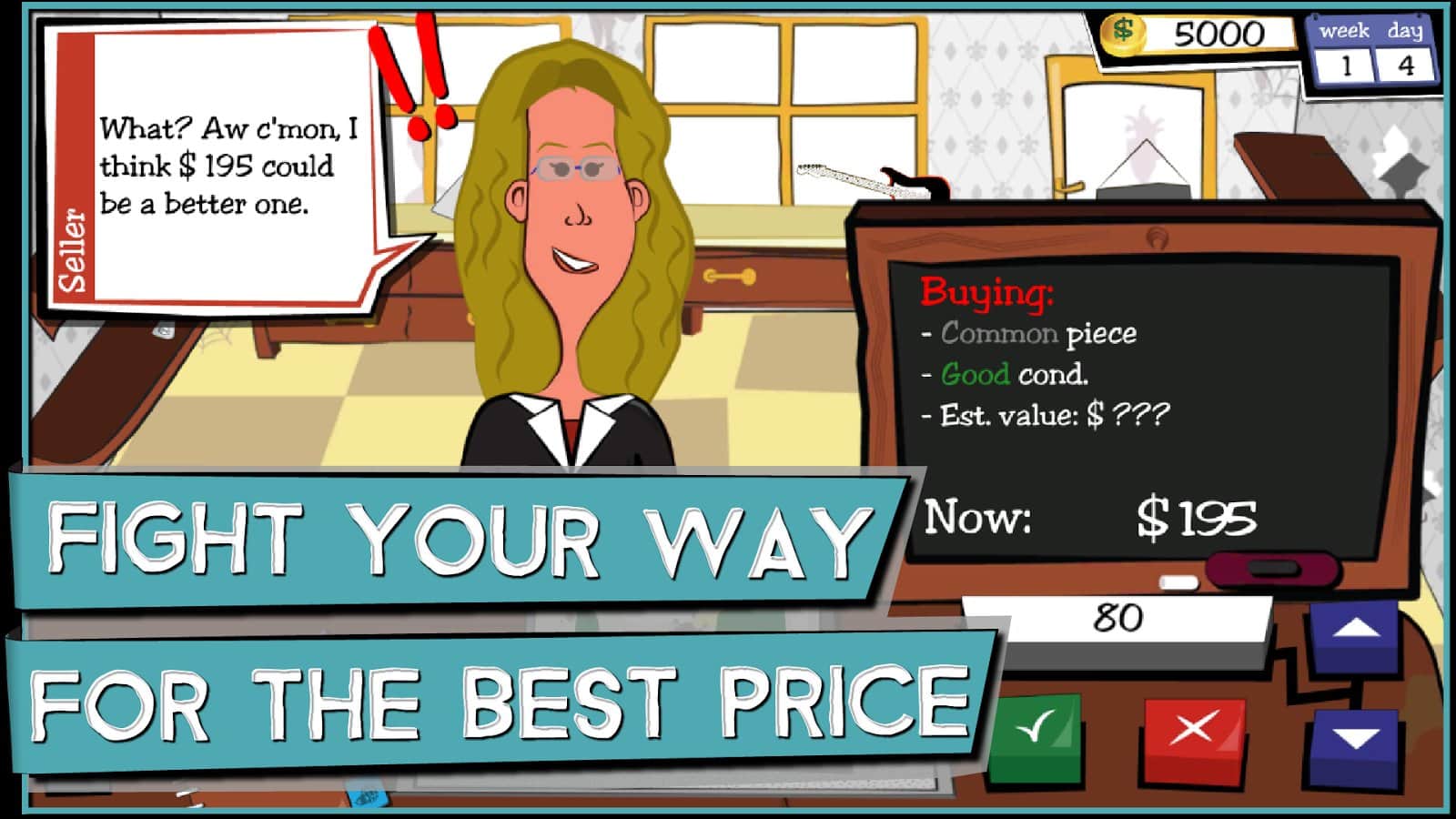 Tüccarın Hayatı Lite - Kredi Dükkanınız – bir kredi dükkanının sahibi olacağınız heyecan verici bir android oyunu. Bu oyunda amacınız, ziyaretçilerden çeşitli eşyaları mümkün olduğunca ucuza almak ve yeniden satmak olacak. Bu oyunda gerçek bir iş insanı olun ve ilk milyonunuzu kazanın. Kredi dükkanınıza, size müzik aletleri, sanat eserleri, silahlar ve antik uygarlıkların eserleri gibi satın almak için çeşitli eşyalar getirecek farklı müşteriler gelecek. Eşyaları değerlendirin ve müşterilerle pazarlık yapın, ayrıca karmaşık durumlarda bir uzman çağırın.